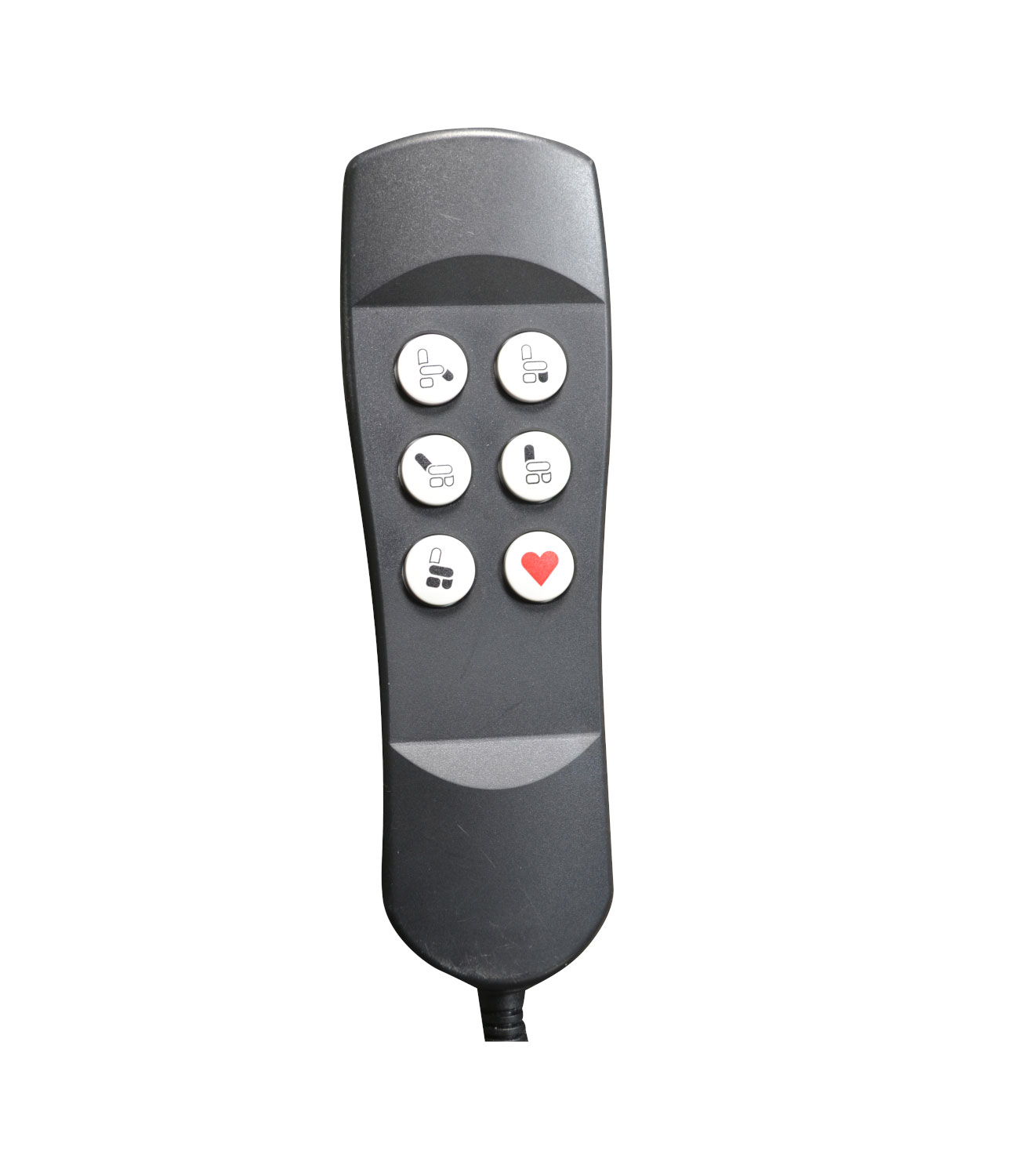 Der Sessel mit Überbreite wird durch einen Handschalter mit 6 Druckknöpfen (2x Beinteil, 2x Rückenteil, Aufstehfunktion und Herz-Waage-Position) verstellt. Generell stoppt die jeweilige Funktion aus Sicherheitsgründen sofort, wenn man den Finger wieder von dem Handschalter nimmt.