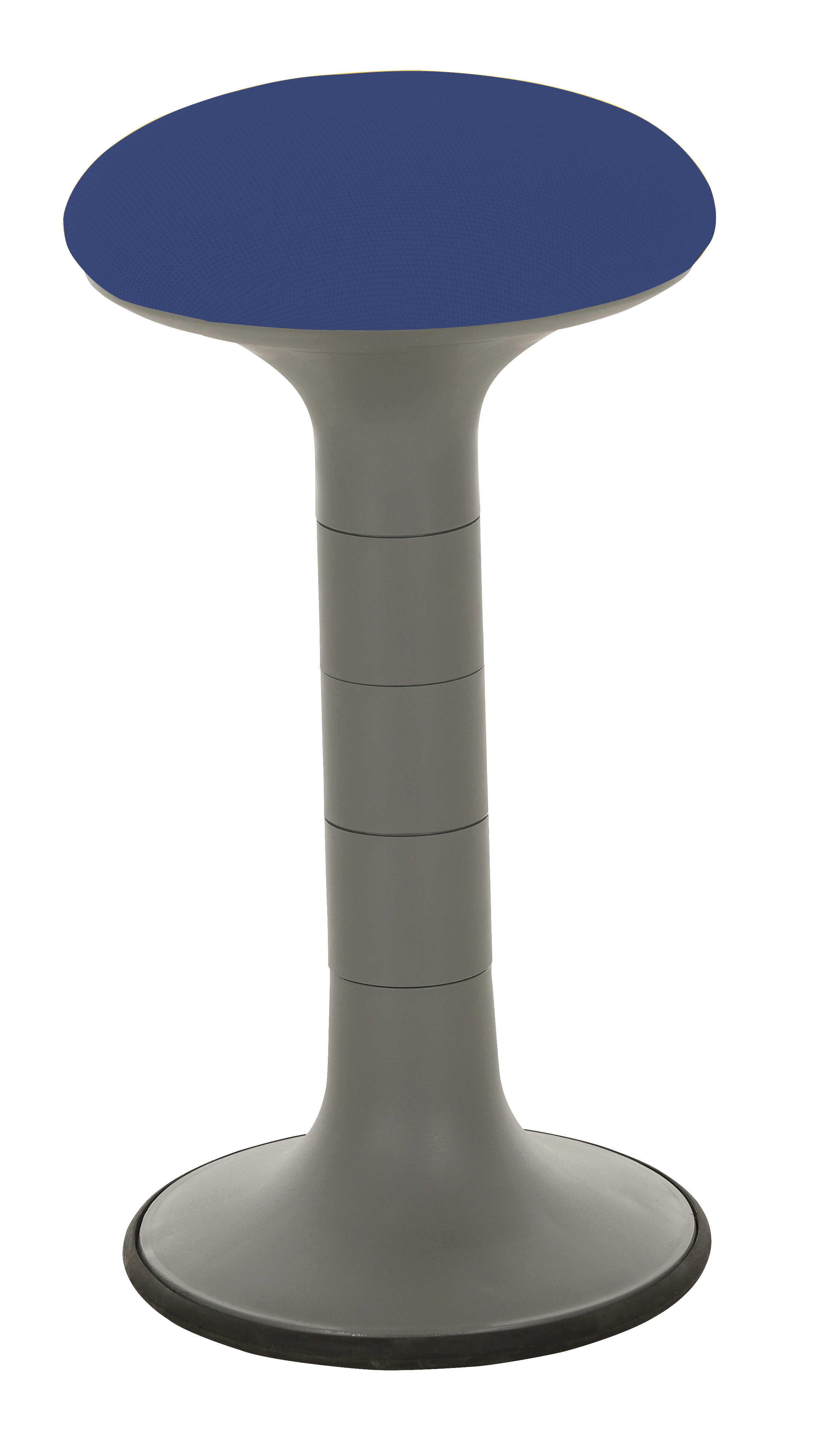 Ergonomisch geformter pilzförmiger Polstersitz mit schwingendem Standfuß in verschiedenen Sitzhöhen (47 cm, 55 cm und 62 cm).