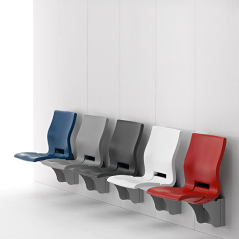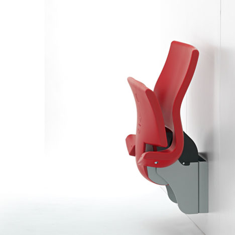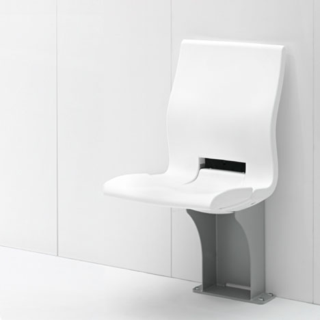 Der Klappsitz bietet bereits in ungepolsterter Ausführung einmalig guten Sitzkomfort durch seine ergonomische Form. Die Kunststoffoberflächen sind pflegeleicht und schwer entflammbar. Ein praktischer Adapter erleichtert die Anbringung an die Wand, alternativ geliefert mit einem massiven Sockel zur Befestigung am Boden.