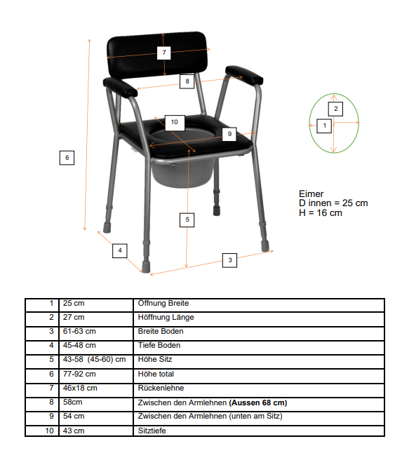Eigenschaften "Toilettenstuhl COMFORT+ XL extra breit"