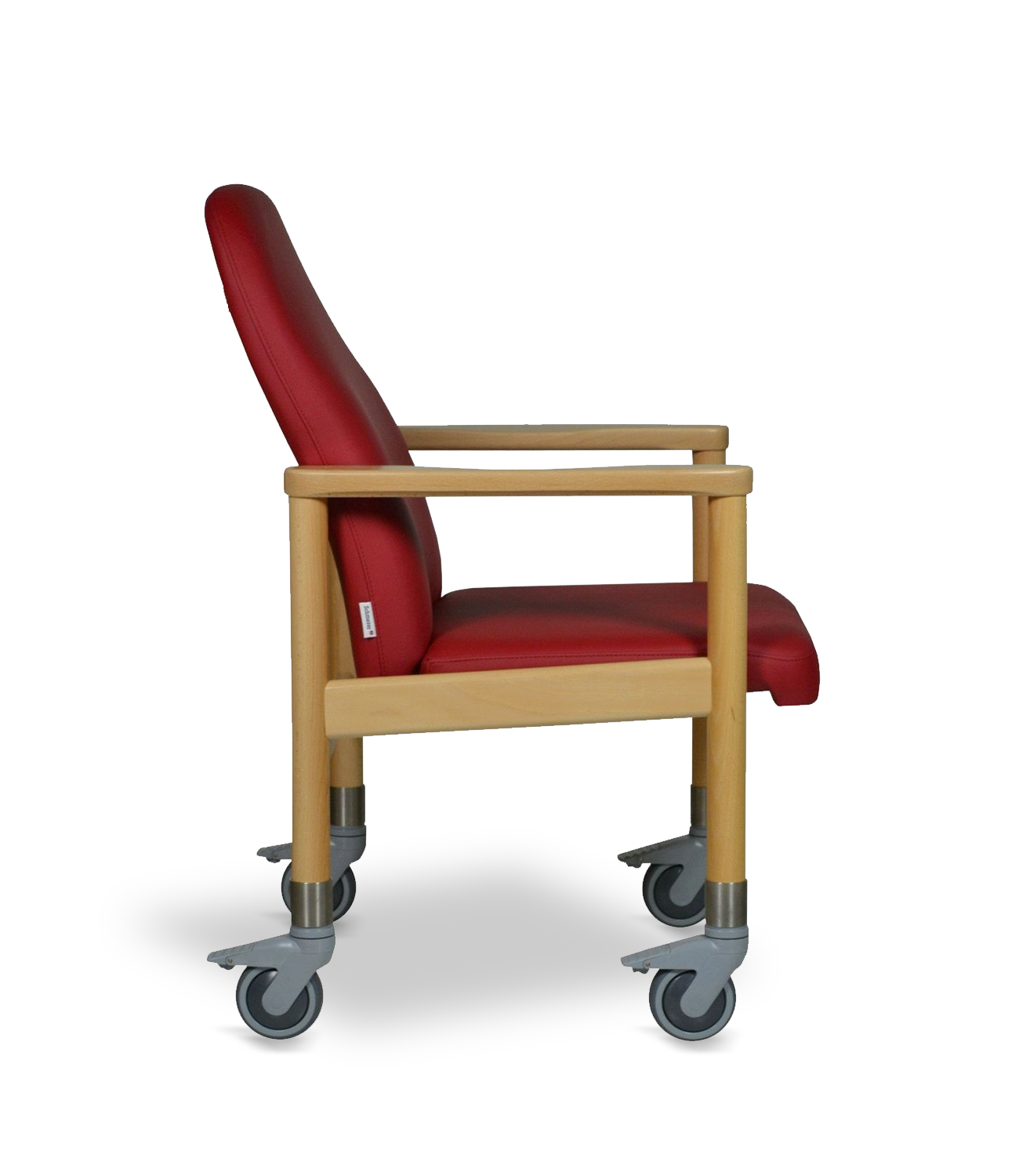 Der Seniorenstuhl Karby ist ein sogenannter "Trippelstuhl". Ein Trippelstuhl wird ganz leicht und ohne fremde Hilfe durch das Bewegen der Beine fortbewegt. Der Sitzende "trippelt" dann den Stuhl vorwärts. Als ein Holzstuhl mit 4 schwenkbaren Rollen und Bremsen bietet er Unabhängigkeit und echte Hilfe im Pflegealltag, z. B. in Tagespflegeeinrichtungen und geriatrische Einrichtungen, aber natürlich auch zu Hause. Die Sitzhöhe kann zwischen 46 und 50 cm. individuell gewählt werden, sodass der Pflegestuhl genau zum Sitzenden passt und dieser leicht durch die eigene Bewegung der Füße seine Mobilität bestimmen kann.