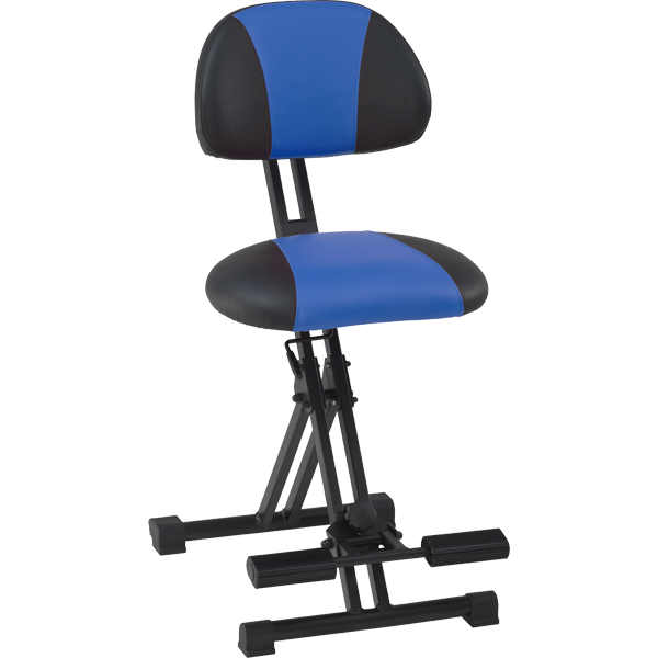 XXL-Stehhilfe Futura bis 200 kg. belastbar, Pedale drehbar für eine individuelle Fußposition, mit Stahlgestell, klappbar und Sitzhöhenverstellung über Handrad (55 - 77 cm.), Sitz in Nierenform, Rückenlehne pendeln gelagert und höhenverstellbar, ausgestattet mit standfesten Gleitern sowie zusätzlichen kleinen Rollen für den einfachen Transport.