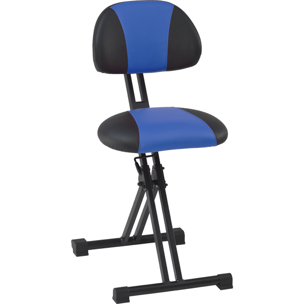 XXL-Stehhilfe Futura bis 200 kg. belastbar, mit Stahlgestell, klappbar und Sitzhöhenverstellung über Handrad (55 - 77 cm.), Rückenlehne pendeln gelagert und höhenverstellbar, ausgestattet mit standfesten Gleitern sowie zusätzlichen kleinen Rollen für den einfachen Transport.