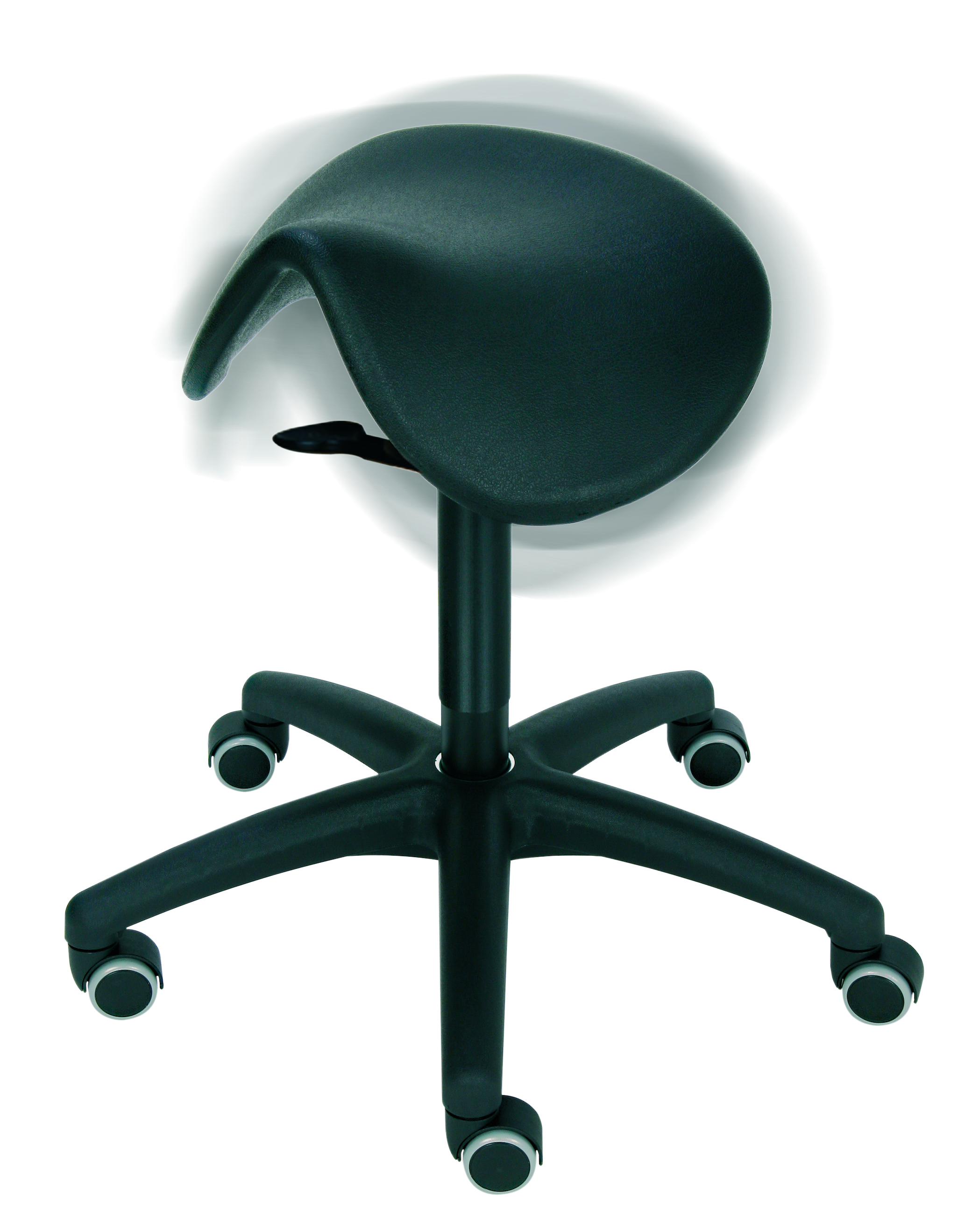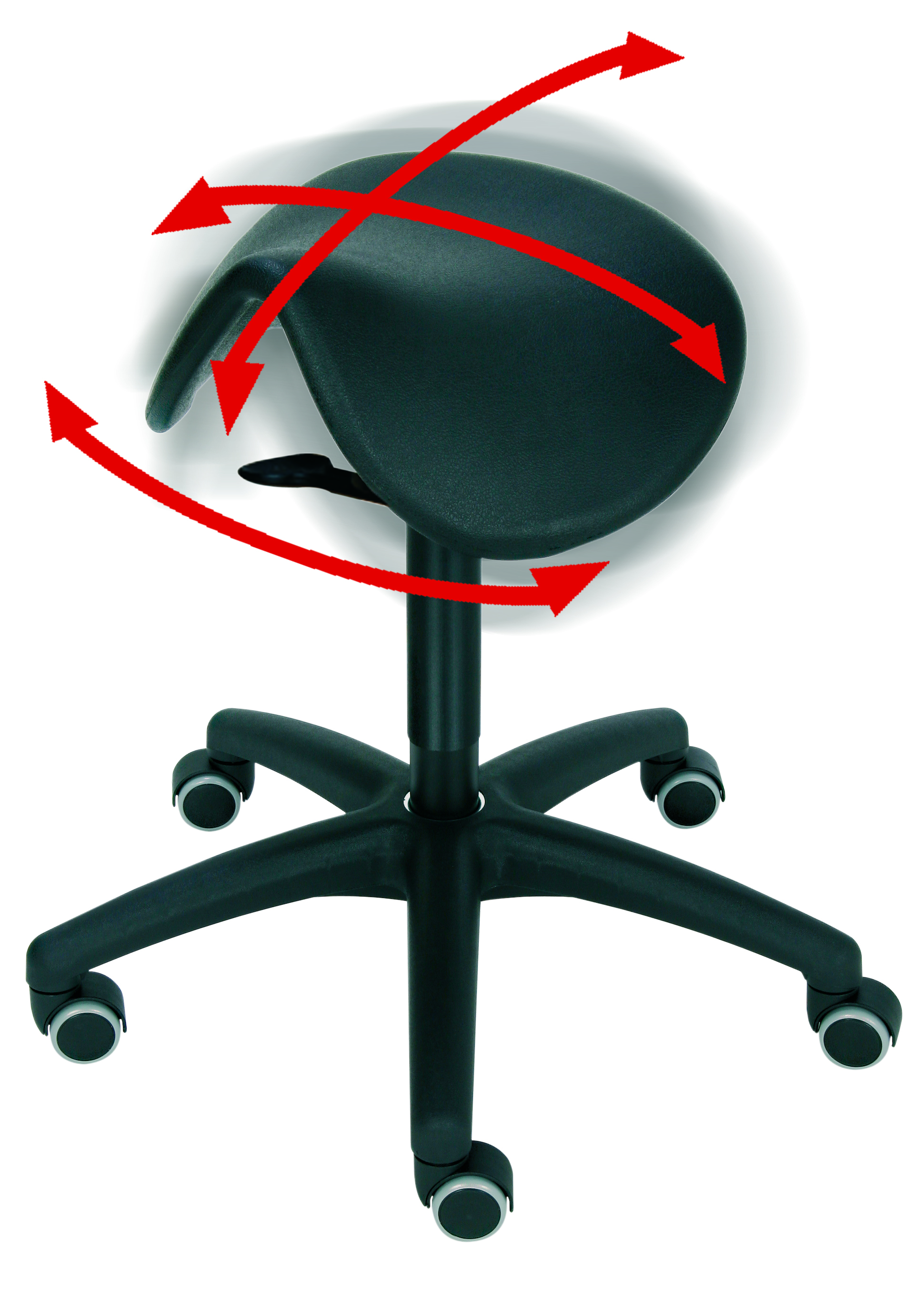 Die revolutionäre 3D-Sitztechnik, die durch eine in alle Richtungen bewegliche Sitzfläche aktives und dynamisches Sitzen fördert verbindet sich bei diesem Hocker mit der besonderen Form des Sattelhockers, die für eine gesunde Sitzposition sorgt.