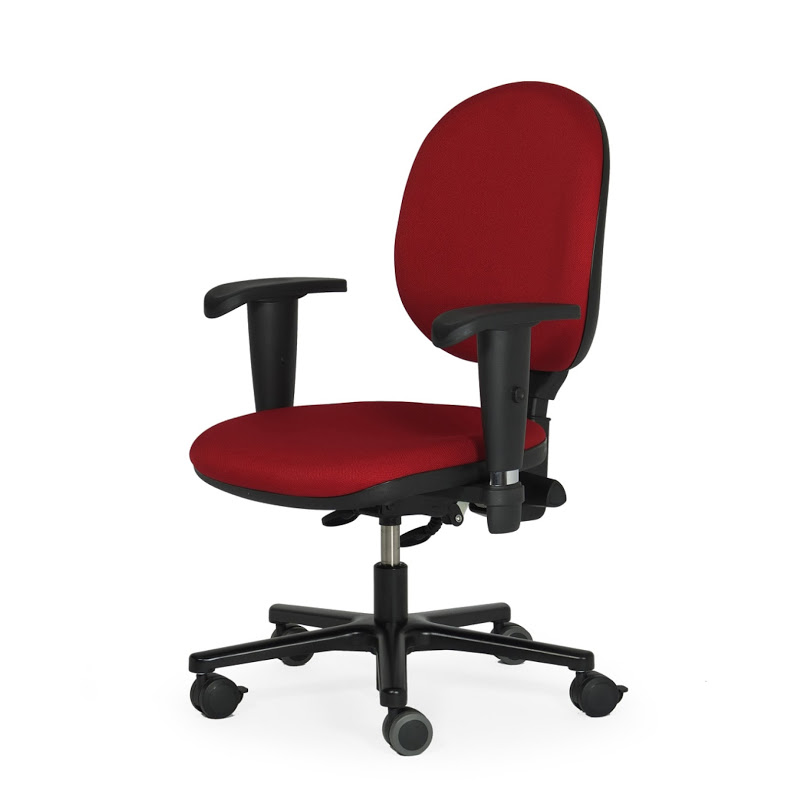 Optional mit Armlehnen. Erzieherstuhl mit einer Sitzhöhe von 31 - 42 cm., Sitzhöhenverstellung 10 cm., Sitzneigeverstellung 9°, Rückenlehnenhöhe 42 cm., Rückenhöhenverstellung 4cm., Rückenneigeverstellung mit Permanentkontakt 25°