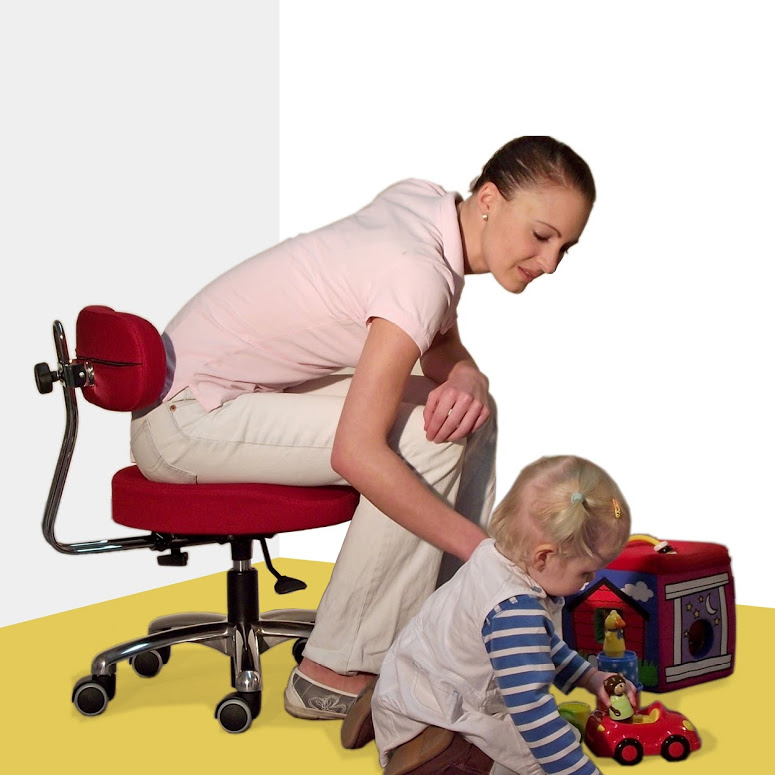Erzieher Lehnenhocker mit Hebelauslösung und einer Sitzhöhe von 36-45 cm., Rückenlehne höhen- (12 cm.) und tiefenverstellbar (8cm.)