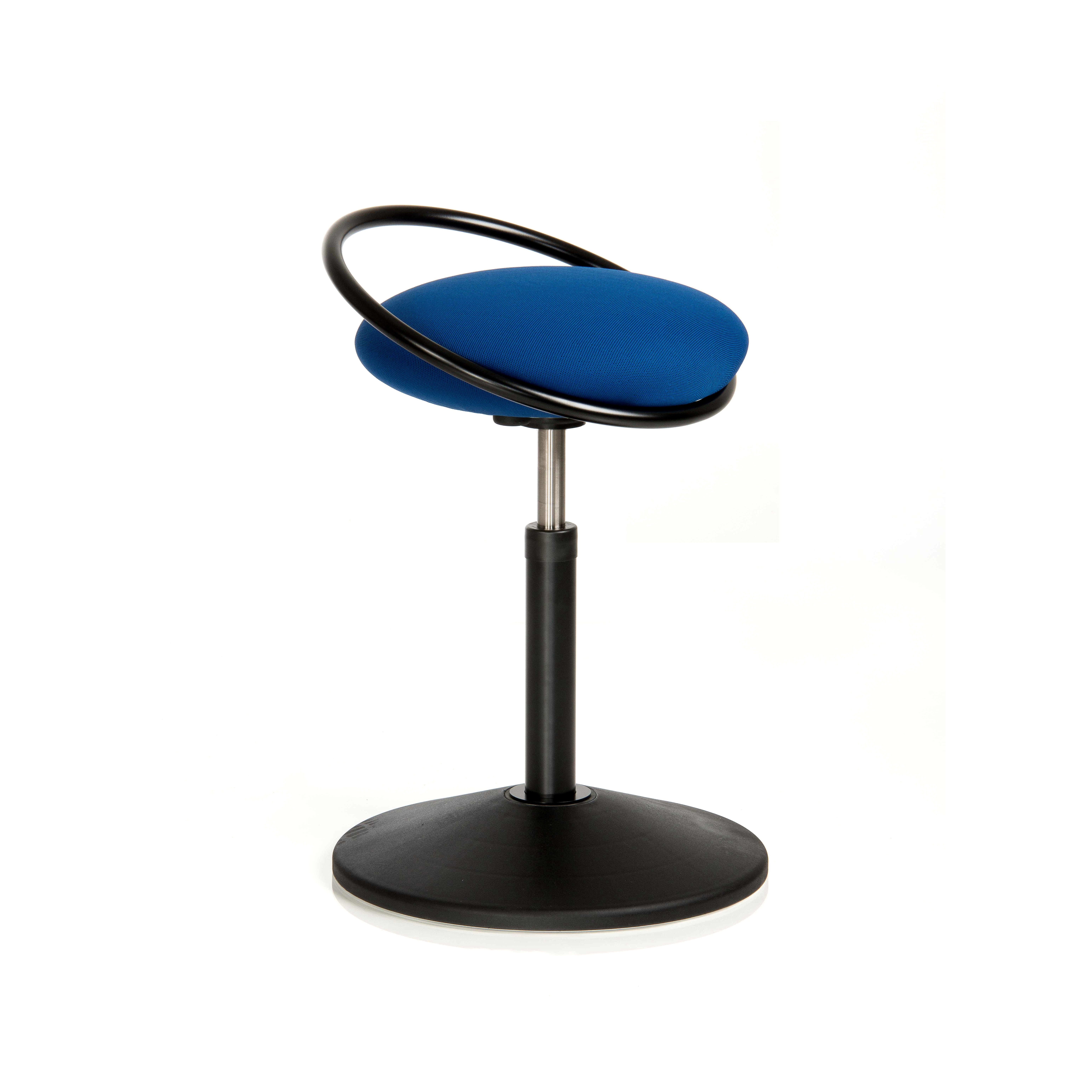 Multibewegliche Stehhilfe mit Gasdruckfeder und einem ergonomisch geformten Komfortsitz mit weichem Polsterbezug zur Entlastung Ihres Körpers. Dynamisches Sitzen aufgrund eines kreisbogenförmig um das Fußgelenk schwenkenden Sitzes. Die Stehhilfe schwingt in alle Richtungen mit und passt sich Ihrer Körperhaltung optimal an. Bandscheiben und Kniegelenke werden entlastet. Bleiben Sie in Bewegung und erhöhen Sie dadurch Ihre Leistungsfähigkeit und Ausdauer! Die rutschfesten Pads unterhalb des Fußes bieten sicheren Halt auf verschiedenen Bodenbelägen und schonen zudem Ihren Boden. Mit Tragegriff zur Unterstützung des Standortwechsels.