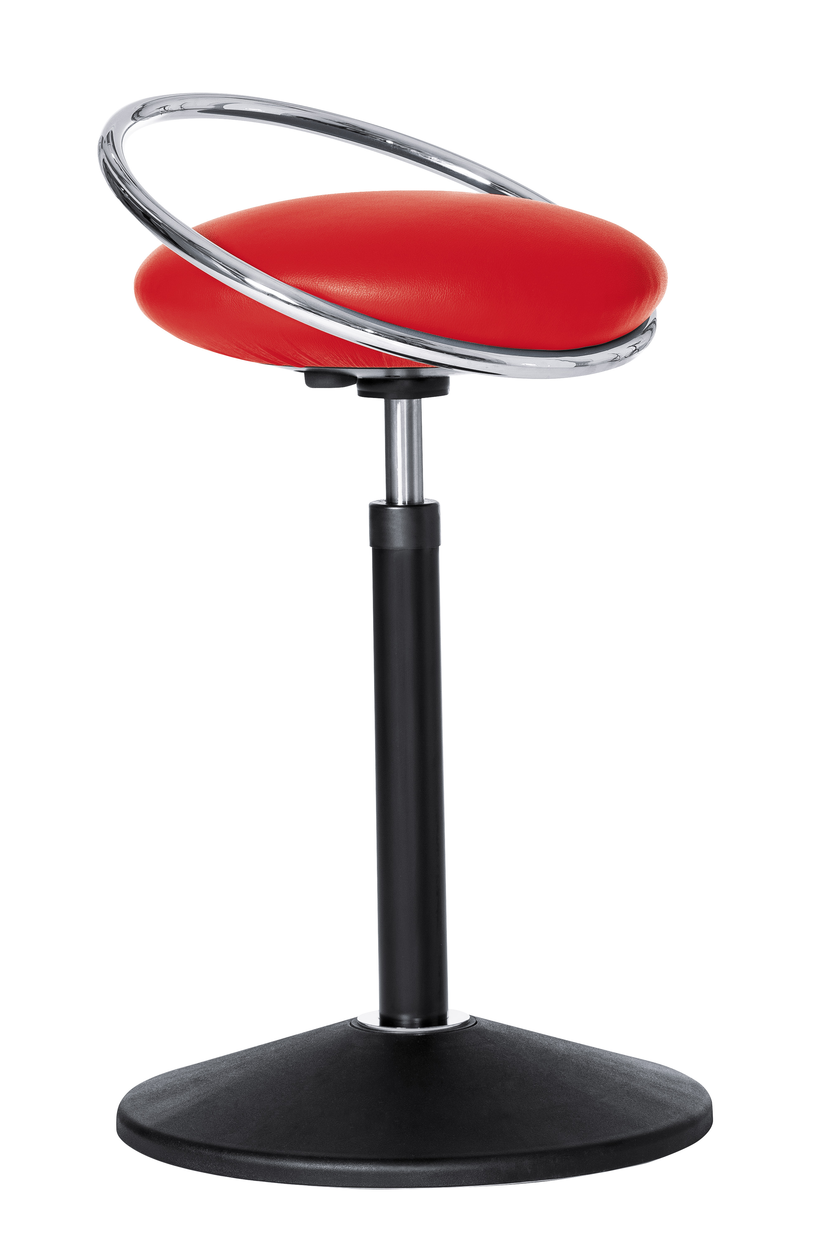 Der multibewegliche Drehhocker von Lotz kann mit unterschiedlichen Komfortsitzen ausgestattet werden und dient zur Entlastung Ihres Körpers bei stehenden Tätigkeiten. Das dynamische Sitzen wird bei diesem Modell nicht durch eine pendelnde Sitzfläche, sondern aufgrund eines kreisbogenförmig um das Fußgelenk schwenkenden Sitzes ermöglicht. Der Hocker schwingt in alle Richtungen mit und passen sich dadurch Ihrer Körperhaltung optimal an. So bleiben Sie in Bewegung und erhöhen dadurch Ihre Leistungsfähigkeit und Ausdauer! Rutschfeste Pads unterhalb des Tellerfußes bieten einen sicheren Halt und schonen außerdem den Bodenbelag. wahlweise runder Pilz-Sitz (PU Soft) ergonomischer Sattelsitz (Kunstleder) Höhenverstellung mittels schwarzer Sicherheitsgasfeder; Hebelauslösung schwarzer Kunststoff-Tellerfuß ø 40 cm mit weicher Elastomer-Sohle für sicheren Halt auf verschiedenen Bodenbelägen Vormontierter Versand, Bauteile nur einfach ineinanderstecken