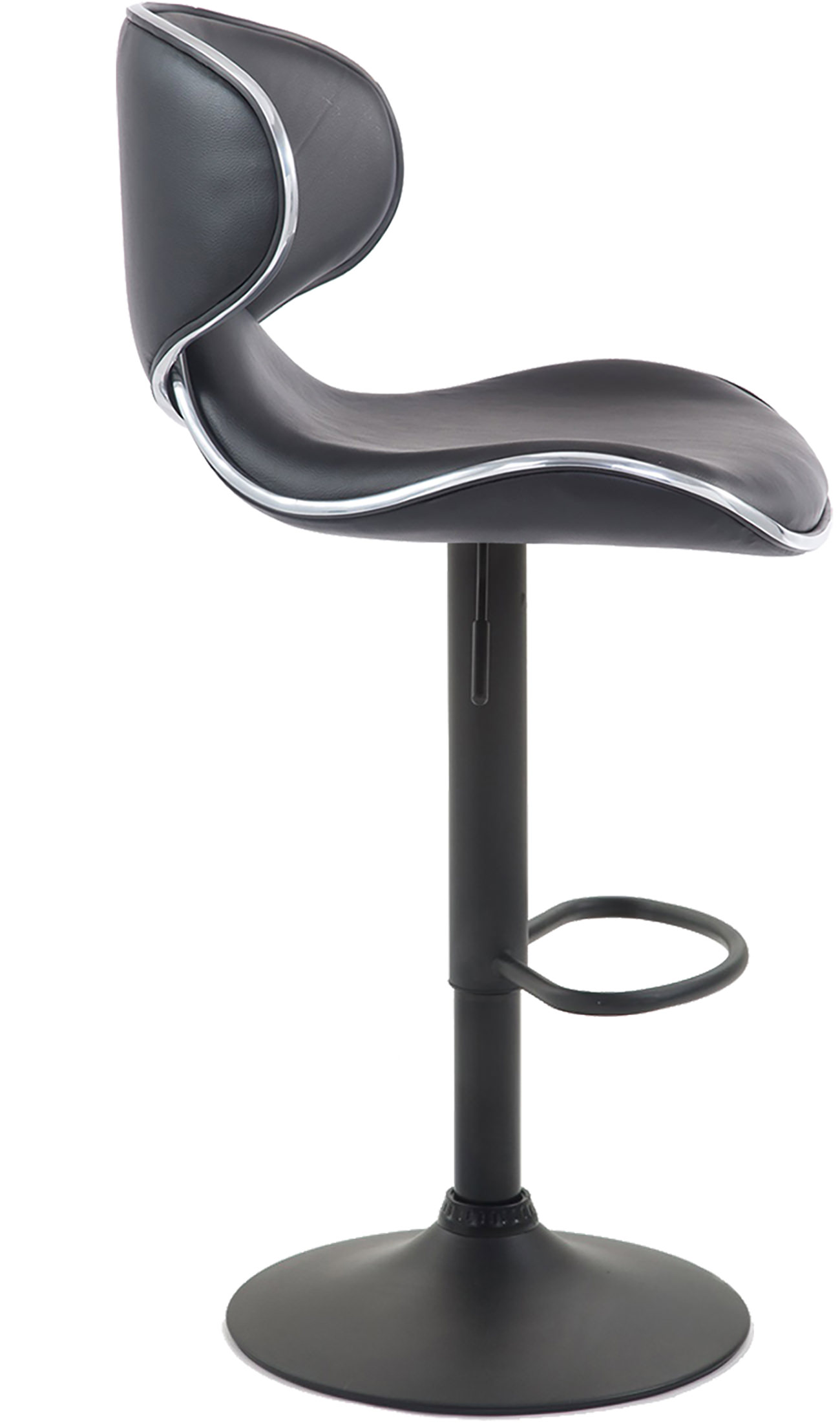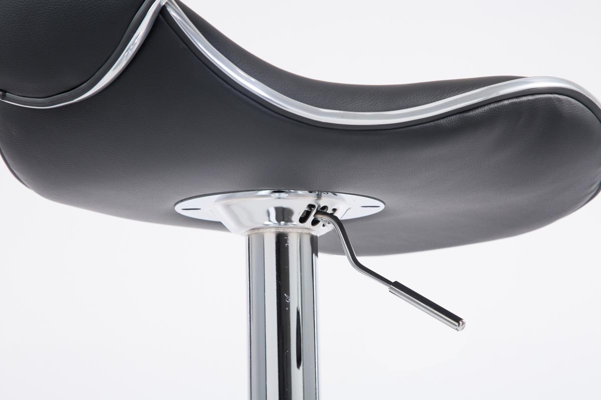 Dieser Barhocker vereint Komfort und Design in bester Art und Weise! Dabei besteht er aus robusten Materialien: Die Sitzfläche ist mit einem pflegeleichten Kunstleder bezogen und leicht gepolstert. Mittels eines Gaslifts aus Metall, wahlweise in Chromoptik, matt schwarz oder matt weiß, ist er stufenlos höhenverstellbar und dadurch für jede Thekenhöhe bestens geeignet. Zusätzlich sorgen die kurze Rückenlehne und die praktische Fußstütze für ein bequemes Sitzen auch über mehrere Stunden hinweg. Das Gestell ist zusätzlich mit einem Bodenschoner versehen, dieser verhindert Kratzer und Beschädigungen des Bodens.