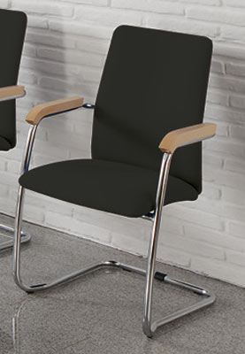 Der gepolsterte Freischwinger-Wartezimmerstuhl BUDDYis3 mit ergonomischer Rückenlehne für ermüdungsfreies Sitzen, optional mit Armlehnen, verchromtem Gestell und Filzgleitern für Hartboden. Auch als Vierfuß-Wartezimmerstuhl verfügbar. 10 Jahre Herstellergarantie