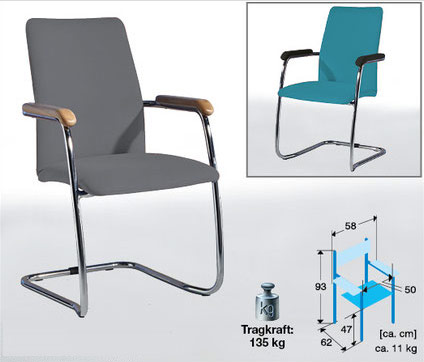 Der SR Comfort bietet mit seinem verchromtem Freischwingergestell und dem echten Rindsleder eine Menge Bequemlichkeit für lange Besprechungen und Konferenzen. Zudem ist ein Kippschutz verbaut, der ungewolltes wegkippen verhindert. Die Vorderseite der Rückenlehne, Sitz und Armlehnen sind mit echtem Rindsleder überzogen (Rückseite Rückenlehne aus Kunstleder).