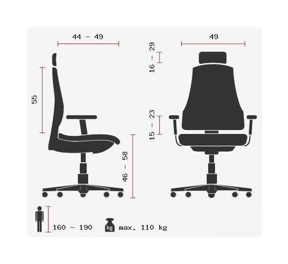 - Armlehnen in der Höhe, horizontal und radial verstellbar