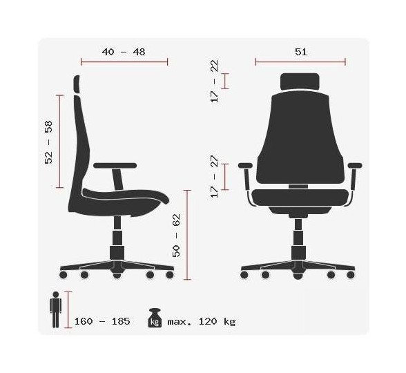- 4D-Armlehnen mit Softpad-Auflage: horizontal-, vertikal-, breiten- und radialverstellbar