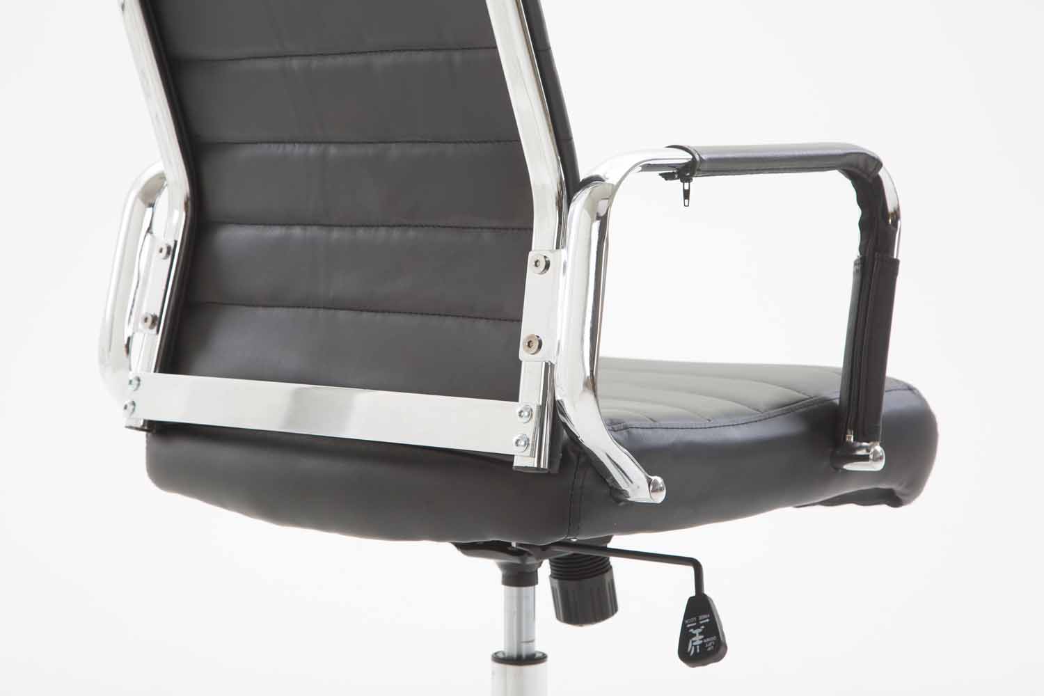 Elegant und bis 120kg belastbar! Der LAUSANNE ist ideal für schwerere Personen geeignet, da die Gasdruckfeder bis 210kg (Dauerbeanspruchung) ausgelegt ist! An Exklusivität und Hochwertigkeit mangelt es dem LAUSANNE nicht. Die hochwertige Polsterung ist mit einem strapazierfähigen Kunstlederbezug ausgestattet, welcher elastisch ist, sprich: bei Belastung dehnt er sich aus und bei Entlastung zieht er sich wieder zusammen. Das sieht nicht nur schöner aus sondern erhöht auch die Lebensdauer des Bezuges. Der Stuhl fußt sicher auf einem sehr stabilen Metallgestell. Die Sitzhöhe ist stufenlos verstellbar, was ergonomisches Sitzen ermöglicht. Der eingebaute Wippmechanismus sorgt zudem für mehr Bewegungsfreiheit. Am Metallgestell sind 5 Leichtlaufrollen angebracht, welche eine hohe Standsicherheit gewähren. Sie sind sowohl für Teppich- als auch für Hartböden geeignet. Materialzusammensetzung Sitzbezug: Kunstleder (100% Polyurethan) Sitz: Bezug: feinstes Kunstleder, Sitz, Arm- und Rückenlehne bequem gepolstert. Moderner Look trifft auf optimalen Komfort. Gestell:Stabiler Chefsessel mit verchromtem Metallgestell, inklusive 5 Leichtlaufrollen. Höhenverstellbar durch GasdruckfederBesonderheiten:Ideal für große und schwere Personen geeignet, belastabr bis 210kg.Wippfunktion für mehr BewegungsfreiheitPflegehinweise:Zur Reinigung empfehlen wir ein mit lauwarmem Wasser angefeuchtetes BaumwolltuchOberflächen nur mit geeignetem Aufsatz absaugenKeine Haushaltsreiniger verwenden