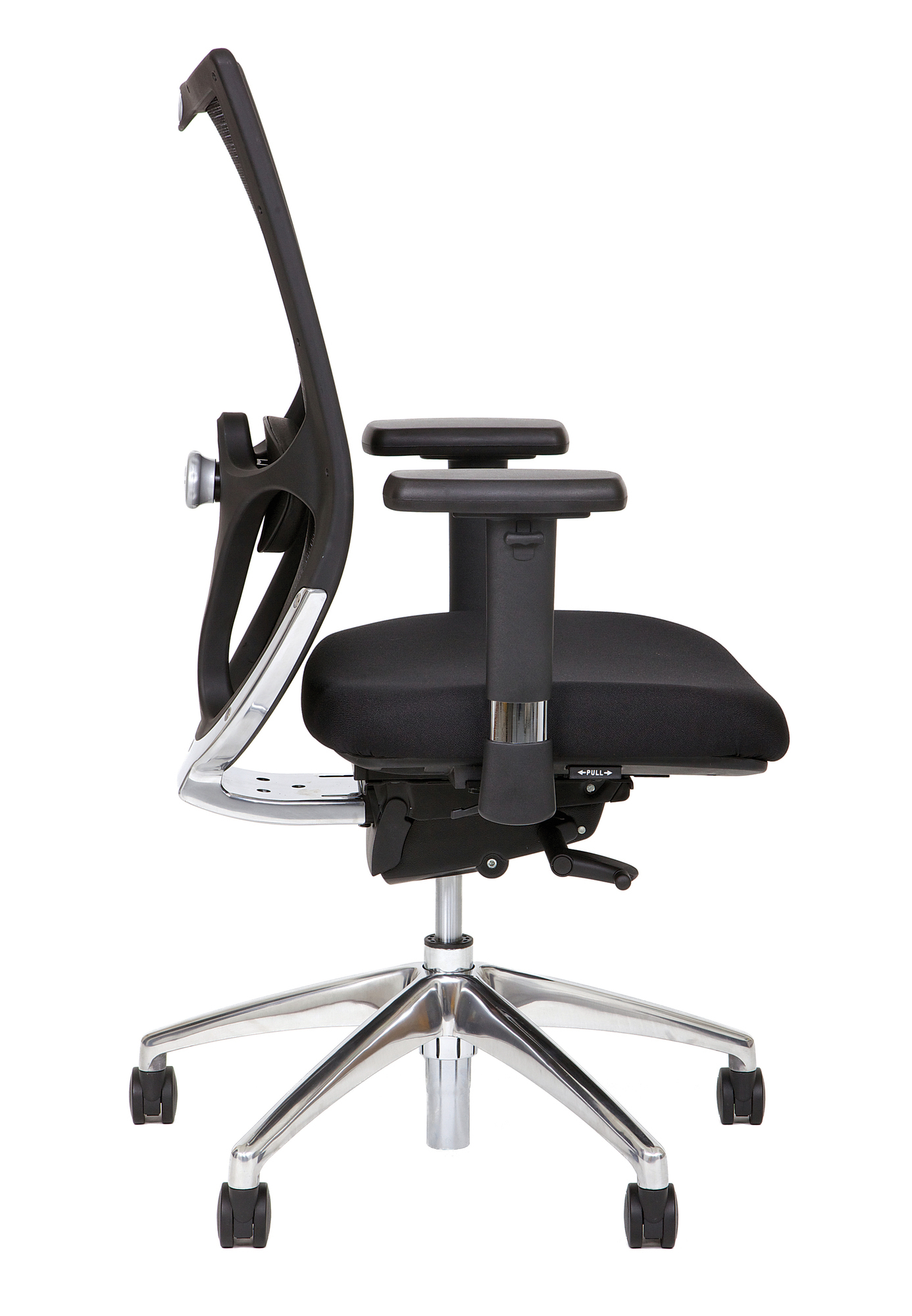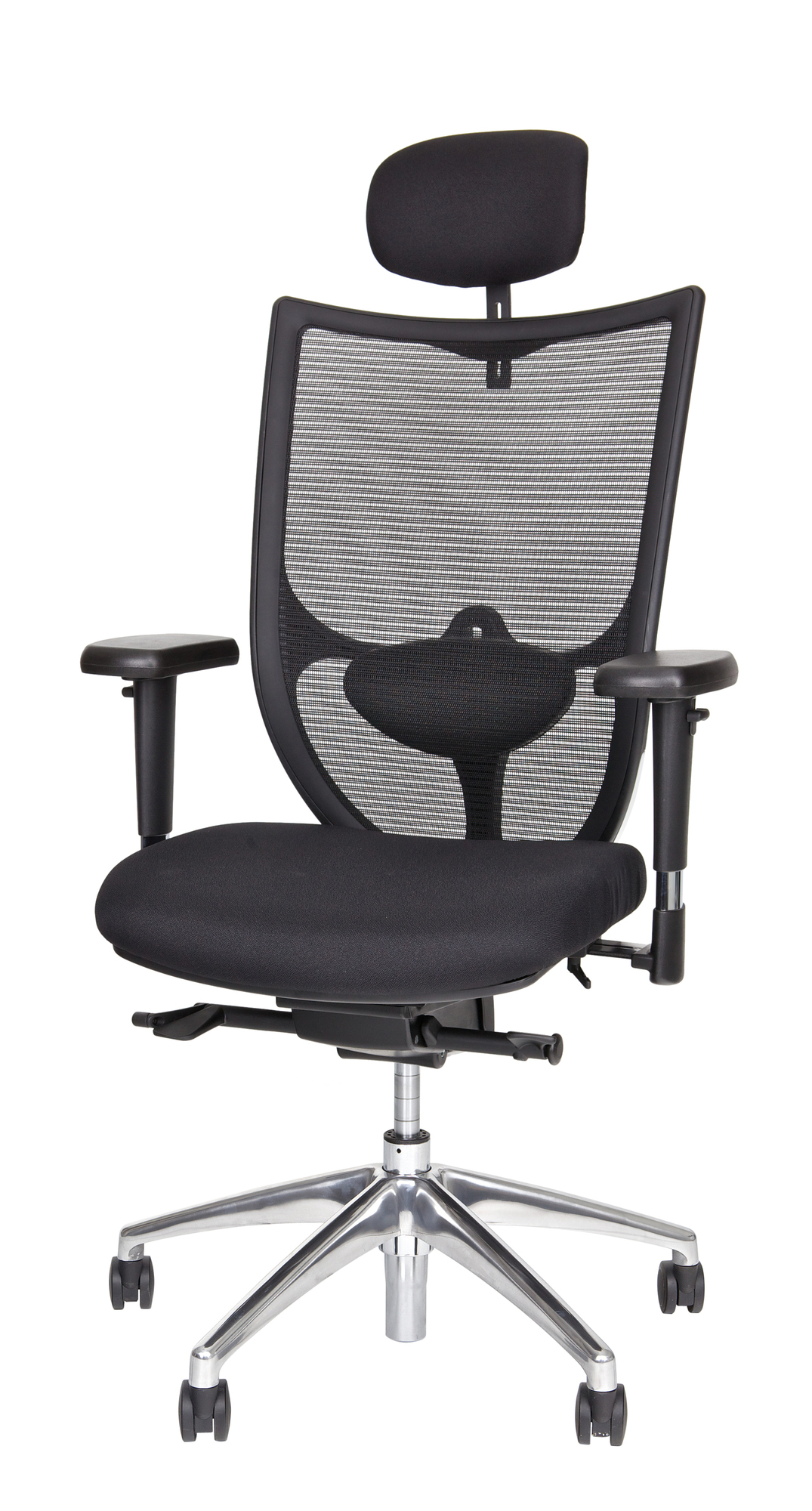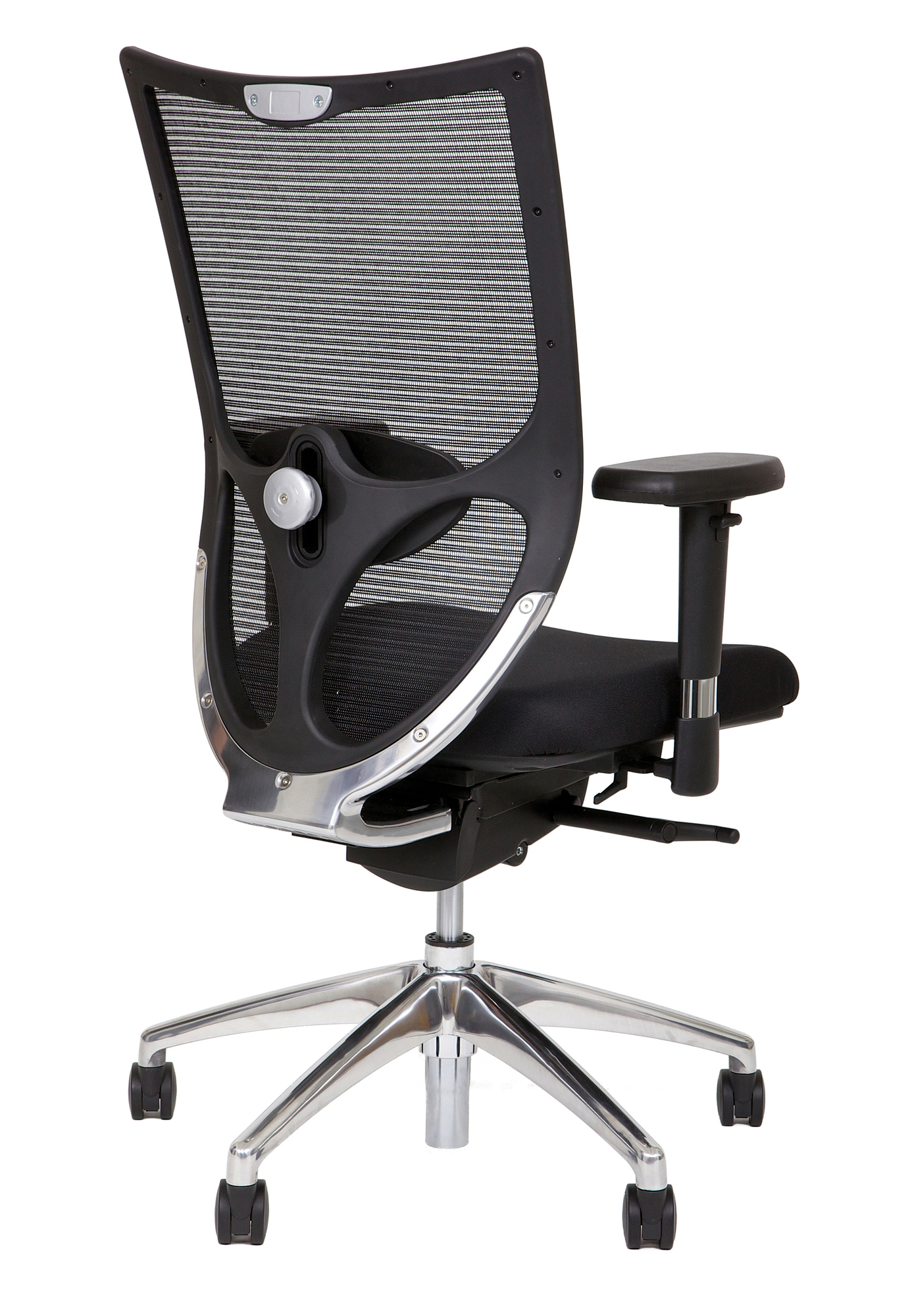 Beim NetStar 77 bleibt kein Wunsch offen: seine hohe Belastbarkeit bis 150 kg. wird ergänzt durch unzählige Einstellmöglichkeiten wie eine höhen- und tiefenverstellbare Lordosenstütze, eine zusätzliche Sitztiefenverstellung (10 cm.) und 3D-Armlehnen (höhen-, breiten- und tiefenverstellbar). Außerdem verfügt der Netzstuhl mit atmungsaktiver Netzrückenlehne stanndardmäßig über ein poliertes Aluminiumgestell mit verchromter Gasfeder und Multifunktionsrollen. Modernes Design verbindet sich mit der Donati Tension Synchronmechanik zu höchster Funktionalität. Dieser komfortabel gepolsterte Bürostuhl ermöglicht ermüdungsfreies Sitzen, auch bei hoher Sitzdauer. Optional (gegen Aufpreis): Kopfstütze in schwarzem Stoff