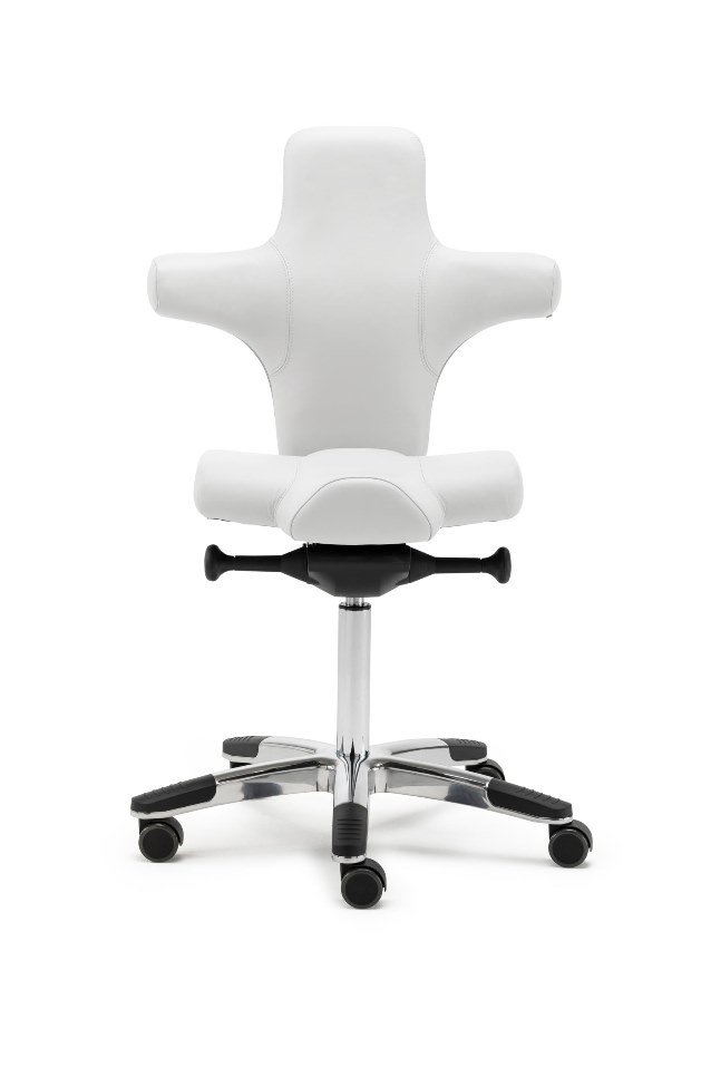 Das Ergonomie-Highlight für grenzenlose Bewegungsfreiheit mit schulterfreier Kreuz-Rückenlehne mit Lordosenstütze. Der orthopädische und speziell geformte Sattelsitz mit Aufrichtungseffekt entlastet den Haltungsapparat und ermöglicht ein besonders komfortables Sitzgefühl. Hochergonomisch und dynamisch eignet der PICASSO sich für den Einsatz am Schreibtisch, am Empfang, in Praxen und Laboren. Ausgestattet mit der professionellen PICASSO Synchron-Mechanik (arretierbar) mit einer Sitztiefenverstellung bis zu 6 cm. bietet er höchsten Sitzkomfort. Ideal bei wechselnder Tätigkeit zwischen Sitz- und Steharbeiten (optional mit höherer Sitzhöhe) und auch für längere Sitzdauer geeignet.
