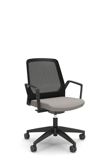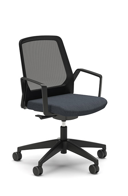 Der netzbespannte Konferenzstuhl BUDDYis3 mit atmungsaktivem Rückenteil und optinoal mit Armlehnen für ermüdungsfreies Sitzen, ausgestattet mit einer arretierbaren Wippfunktion, einer Sitzhöhenverstellung und einem Fußkreuz mit Rollen: für den gehobenen Konferenzraum.
