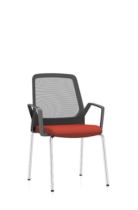 Der netzbespannte Vierfuß-Wartezimmerstuhl BUDDYis3 mit atmungsaktivem Rückenteil für ermüdungsfreies Sitzen, optional mit Armlehnen, verchromtem Gestell und Filzgleitern für Hartboden. Auch als Freischwinger und als Konferenzstuhl mit Fußkreuz und Rollen verfügbar.