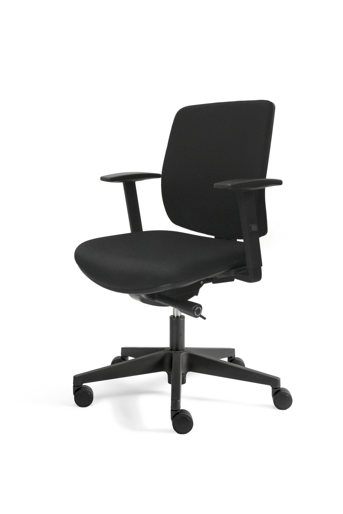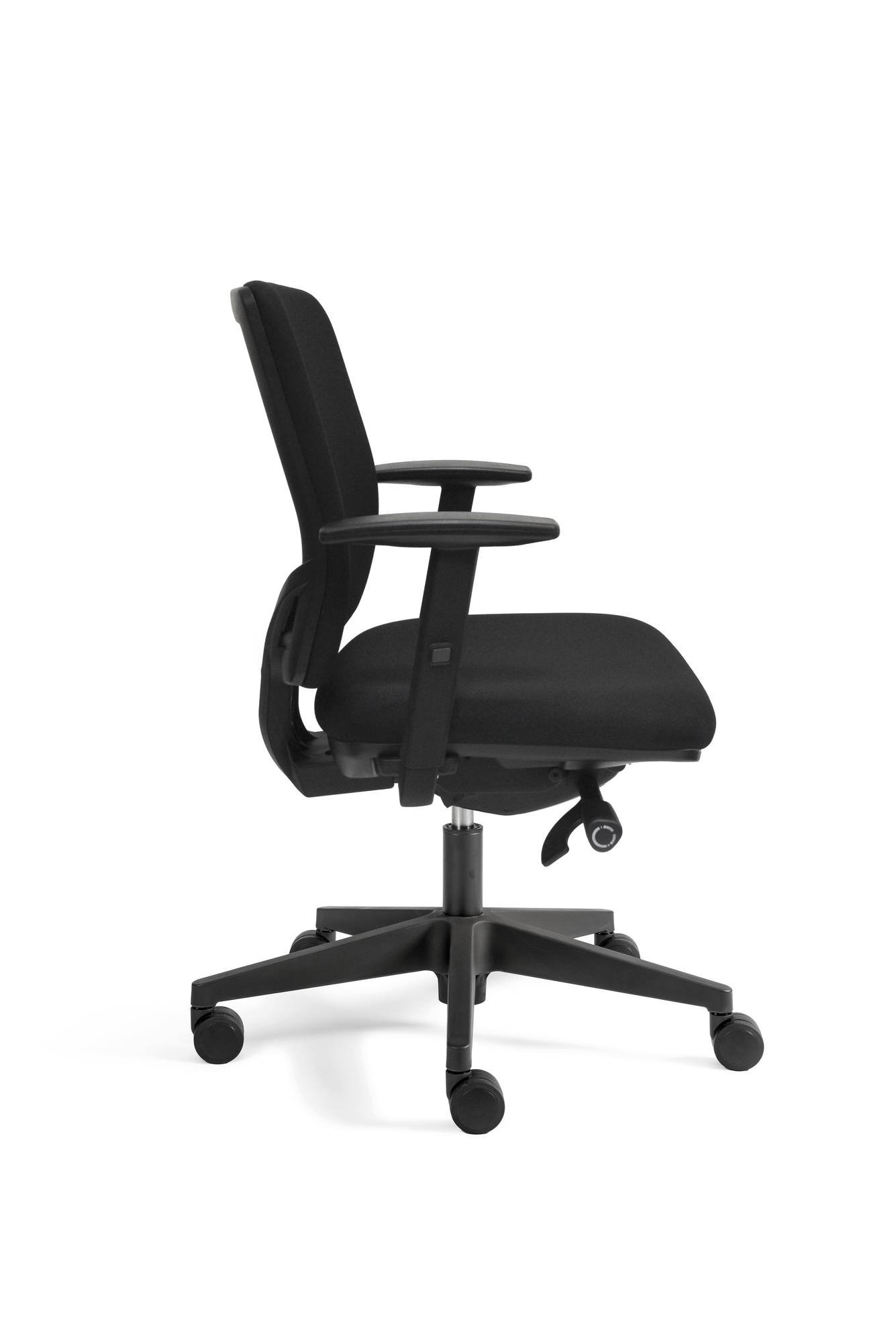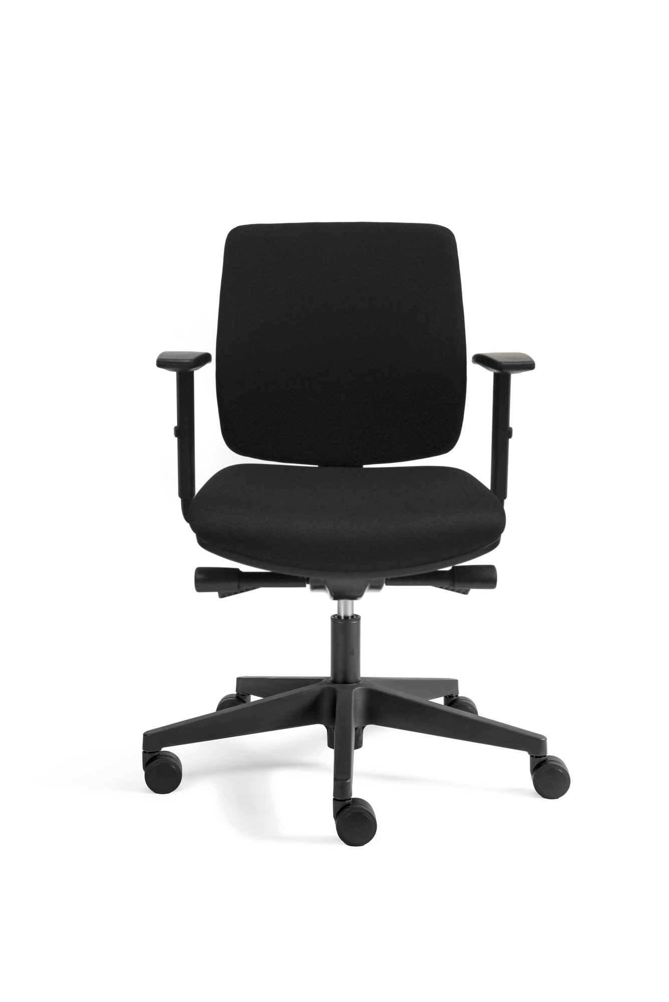 Der Economy-Drehstuhl A300 verfügt über eine Synchronmechanik mit Gewichtsregulierung, eine um 6 cm. verstellbare Sitztiefe und höhen- sowie breitenverstellbare Armlehnen mit Klickverstellung. Der bequeme Sitz und die gepolsterte Rückenlehne werden durch ein Design-Gestell aus Kunststoff mit schwarzer Gasfeder abgerundet.