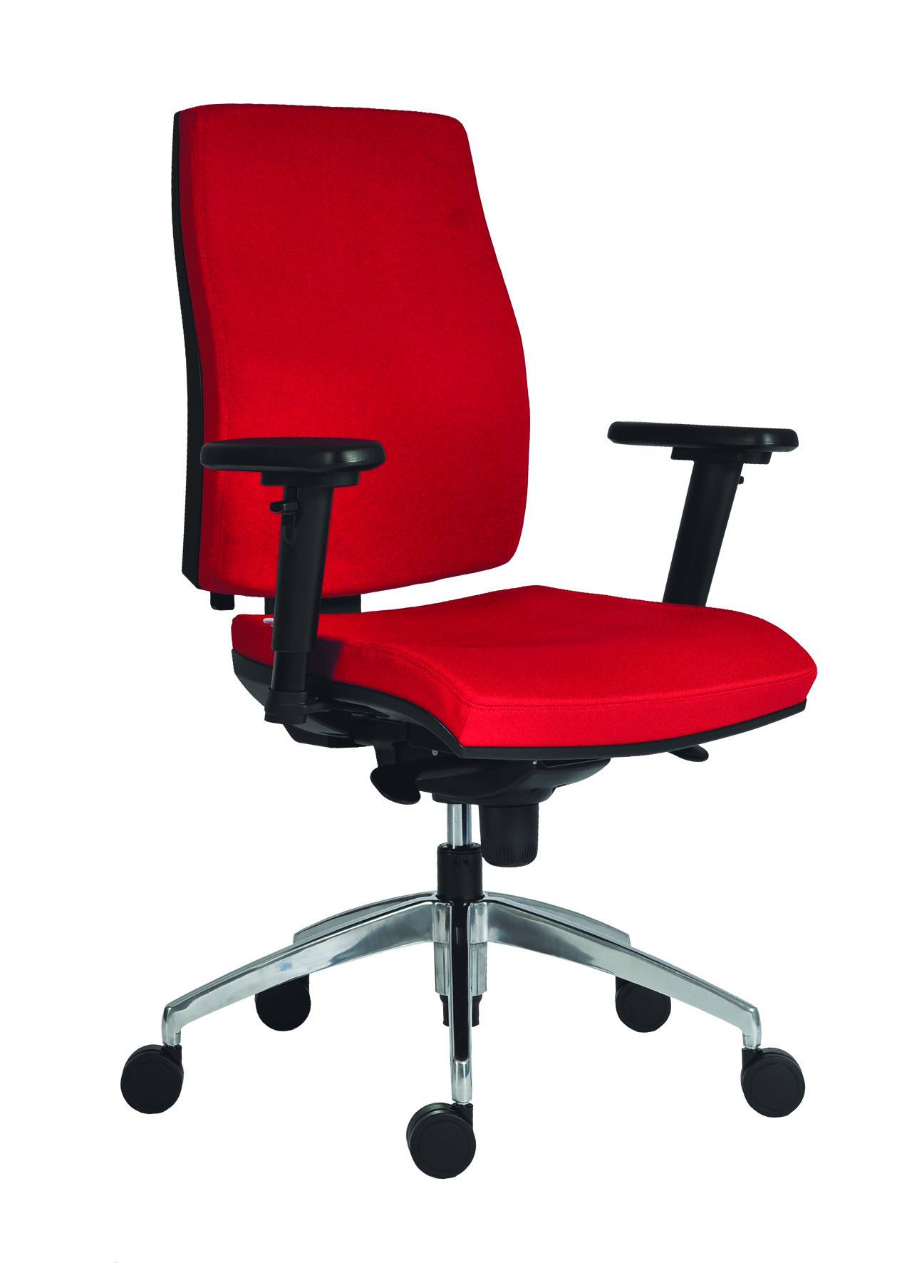 Er besitzt eine multifunktional Synchronmechanik mit individuell einstellbarem und arretierbarem Gegendruck mit stufenloser Gewichtseinstellung von 45 - 150 kg., wahlweise auch mit automatischer Gewichtseinstellung. Der Schiebesitz ermöglicht eine Sitztiefenverstellung von bis zu 6 cm. Die ergonomische Rückenlehne mit Anti-Shock-Funktion läßt sich per Druckknopf in der Höhe verstellen. Eine stufenlose Sitzhöhenverstellung per Sicherheits-Gaslift ist in drei verschiedenen Sitzhöhen möglich. Komfortable Profi-Qualität für den Einsatz von 12 Stunden und mehr!