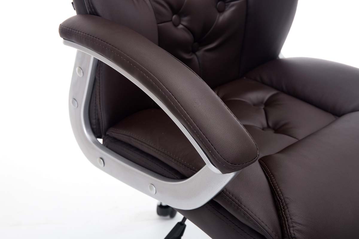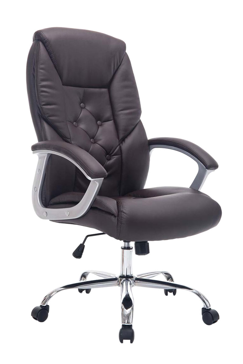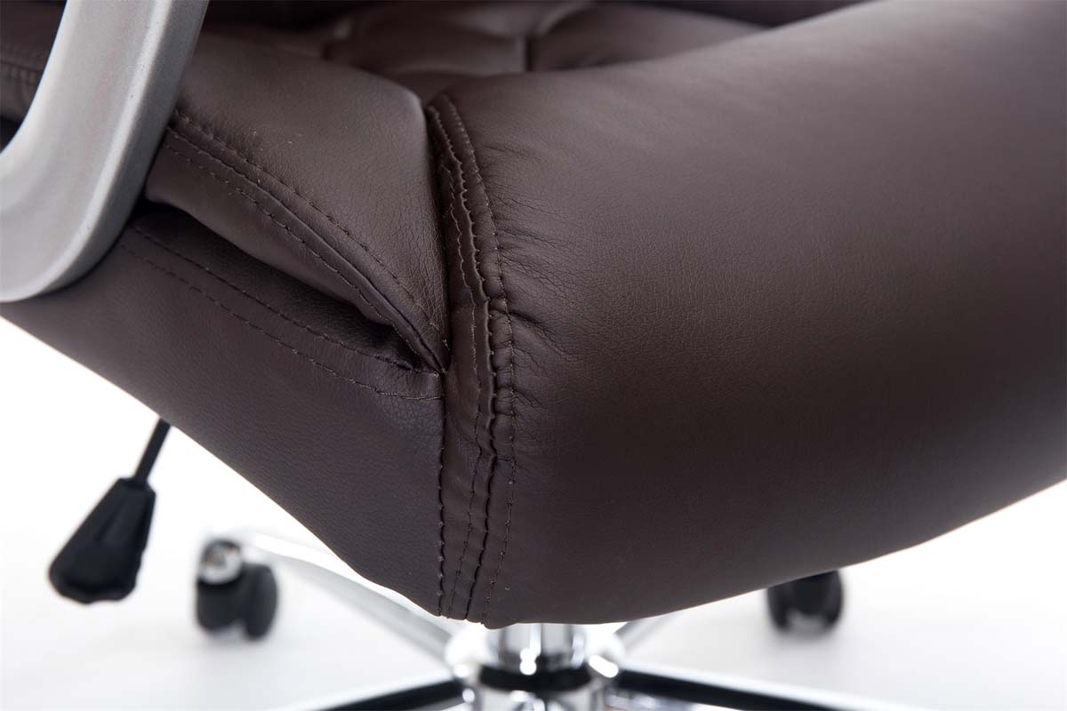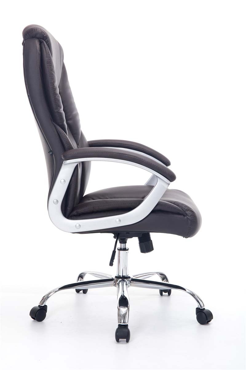 Elegant und bis 120kg belastbar! Der LAUSANNE ist ideal für schwerere Personen geeignet, da die Gasdruckfeder bis 210kg (Dauerbeanspruchung) ausgelegt ist! An Exklusivität und Hochwertigkeit mangelt es dem LAUSANNE nicht. Die hochwertige Polsterung ist mit einem strapazierfähigen Kunstlederbezug ausgestattet, welcher elastisch ist, sprich: bei Belastung dehnt er sich aus und bei Entlastung zieht er sich wieder zusammen. Das sieht nicht nur schöner aus sondern erhöht auch die Lebensdauer des Bezuges. Der Stuhl fußt sicher auf einem sehr stabilen Metallgestell. Die Sitzhöhe ist stufenlos verstellbar, was ergonomisches Sitzen ermöglicht. Der eingebaute Wippmechanismus sorgt zudem für mehr Bewegungsfreiheit. Am Metallgestell sind 5 Leichtlaufrollen angebracht, welche eine hohe Standsicherheit gewähren. Sie sind sowohl für Teppich- als auch für Hartböden geeignet. Materialzusammensetzung Sitzbezug: Kunstleder (100% Polyurethan) Sitz: Bezug: feinstes Kunstleder, Sitz, Arm- und Rückenlehne bequem gepolstert. Moderner Look trifft auf optimalen Komfort. Gestell:Stabiler Chefsessel mit verchromtem Metallgestell, inklusive 5 Leichtlaufrollen. Höhenverstellbar durch GasdruckfederBesonderheiten:Ideal für große und schwere Personen geeignet, belastabr bis 210kg.Wippfunktion für mehr BewegungsfreiheitPflegehinweise:Zur Reinigung empfehlen wir ein mit lauwarmem Wasser angefeuchtetes BaumwolltuchOberflächen nur mit geeignetem Aufsatz absaugenKeine Haushaltsreiniger verwenden