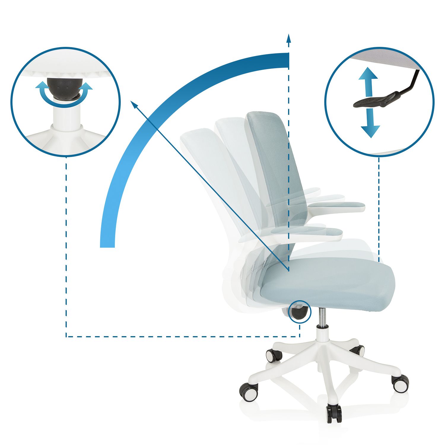 Der Drehstuhl MIKO W mit ergonomisch geformter Rückenlehne besitzt eine ultraflexible Lordosenstütze, die mit ihren luftdurchlässigen Cut-outs an einen Schmetterling, der seine Flügel ausbreitet erinnert und sich durch die dynamische Form perfekt an den Lendenwirbelbereich anschmiegt.. Durch die atmungsaktive Netzbespannung der Rückenlehne sorgt dieser Drehstuhl auch bei längerem Sitzen für ein angenehmes Körperklima. Die arretierbare Wippmechanik bzw. der Widerstand beim Zurücklehnen lässt sich über einen Drehknauf unterhalb der Sitzfläche individuell an das Gewicht des jeweiligen Nutzers anpassen und ist in aufrechter Position arretierbar Die praktisch nach oben klappbaren Armlehnen für mehr Bewegungsfreiheit gehören beim MIKO W zur Standardausstattung. Außerdem ist er mit lastabhängig gebremsten Multifunktionsrollen ausgestattet, für alle Böden geeignet. Dadurch rollt der Stuhl nur unter Belastung, in unbelastetem Zustand bremsen die Rollen, um ein ungewolltes Wegrollen zu verhindern.