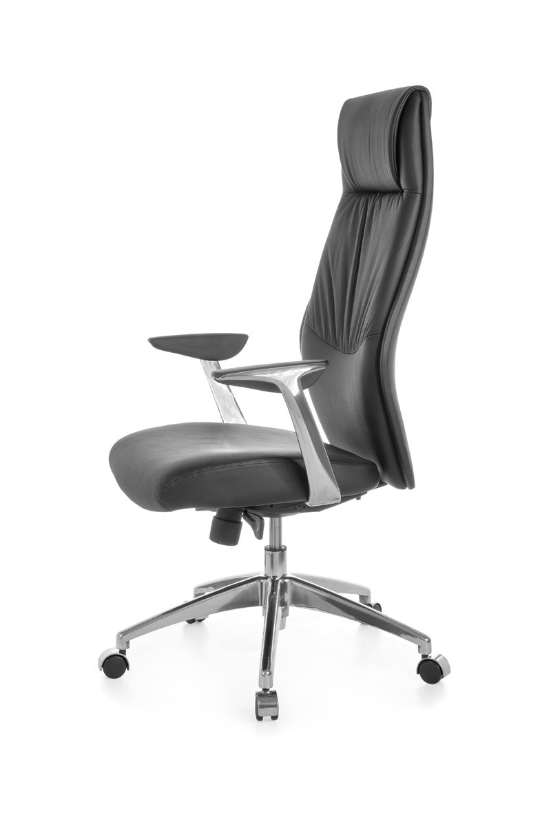 Design Chefsessel Komfortabler Design Chefsessel Ergonomisches und extra bequemes Formpolster (vorne abgesenkt zur Beinentlastung) Elegante üppige Polsterung mit weichem Echtleder (hochwertiges Rindsleder), Unterseite der Sitzfläche, Hinterseite der Rückenlehne & Bezug der Armlehnen mit Kunstleder Hochglanz verchromte Armlehnen mit weicher Polsterung (abnehmbar) 5-Punkt Multiblock Mechanik, individuell auf das Körpergewicht einstellbar Formschönes Aluminum Fußkreuz, hochglanz poliert Höhenverstellbar mittels Gasdruck ( LGA Geprüft ) Langlebige Konstruktion - Präzise verarbeiteter Bezug Dieser Stuhl wird zerlegt geliefert, die Montage ist einfach selbst durchzuführen.