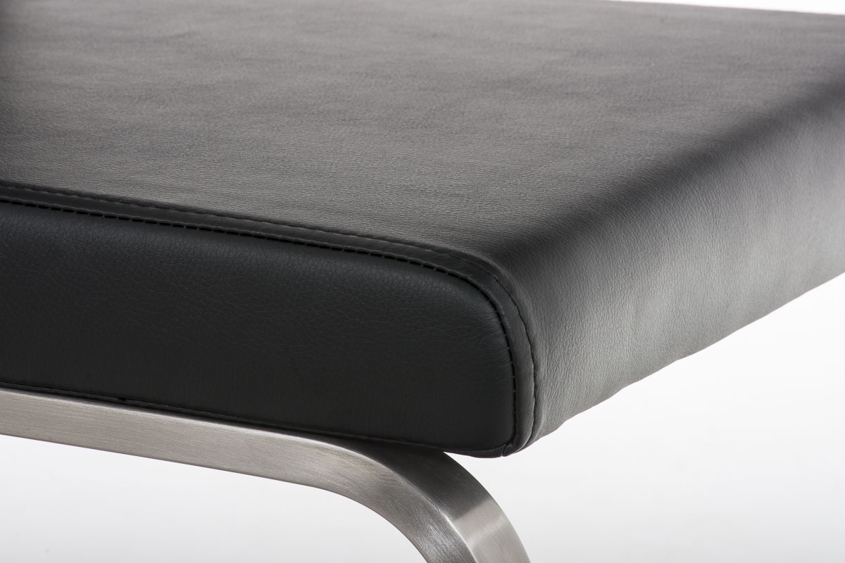 Belfort ermöglicht ein angenehmes Sitzerlebnis, selbst über längere Zeiträume hinaus, dank der breiten Sitzfläche und dem angenehm gepolsterten Sitz. Der schicke Kunstlederbezug lässt sich außerdem, ebenso wie das Edelstahl-Gestell, einfach reinigen.