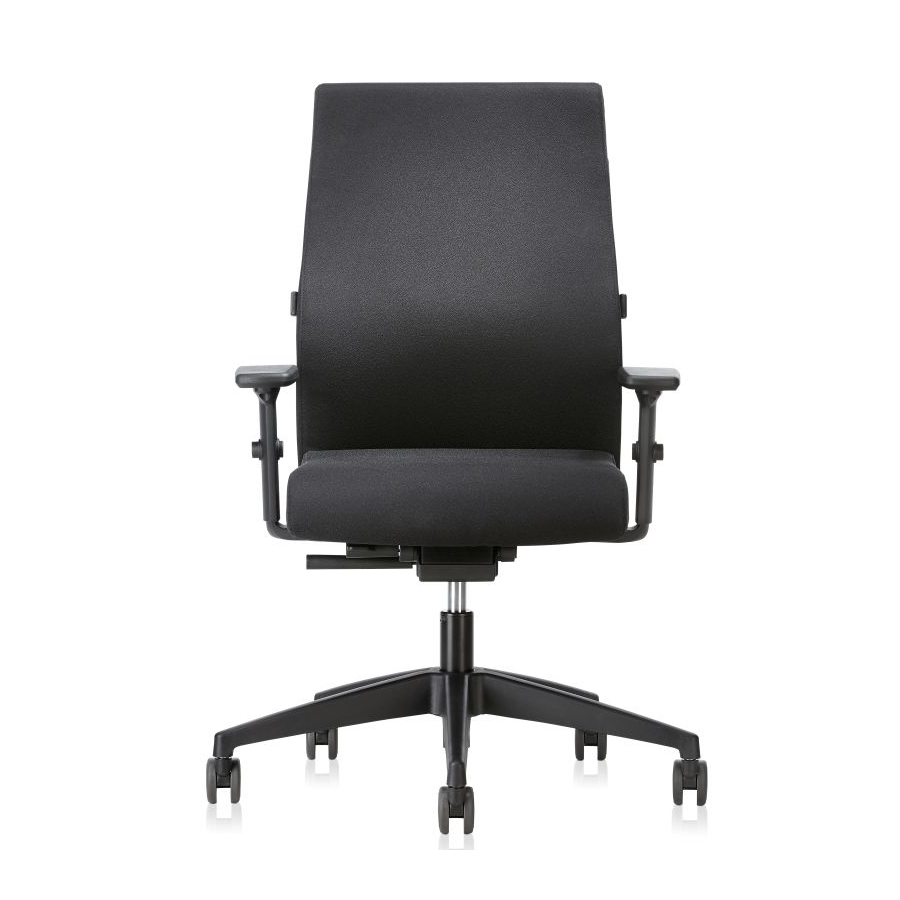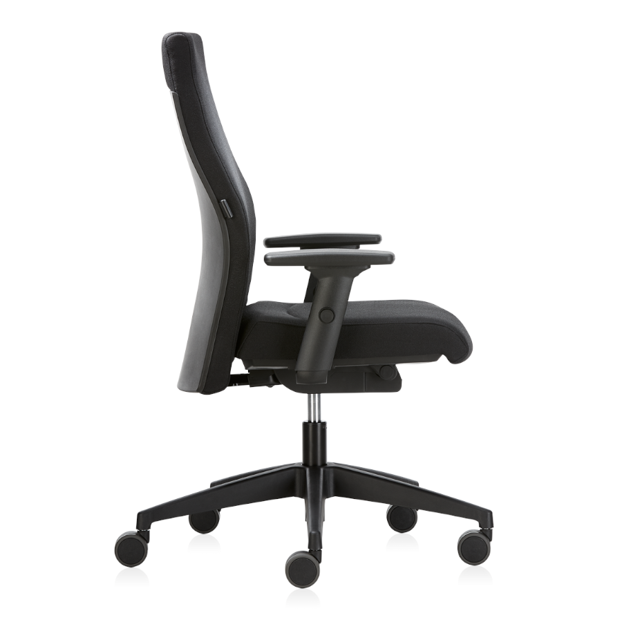 Schnell lieferbarer Allrounder von Interstuhl. Drehstuhl mit hoher Rückenlehne, der nicht nur im Design sondern auch in der Funktion keine Kompromisse kennt. Ausgestattet mit einer verstellbarer Lordosenstütze, Autolift-Mechanik, die sich mit automatischer Gewichtsregulierung auf die Größe und das Gewicht des Nutzers einstellt, einer Sitztiefen- sowie Sitzneigeverstellung und breiten-, -höhen, tiefenverstellbaren und schwenkbaren Armlehnen mit weicher Auflage ist er ein hoch qualitativer Allrounder, der in nur wenigen Tagen lieferbar ist. Der Klassiker erleichtert den Arbeitsalltag und fördert erfolreiches Arbeiten. Der gepolsterte Rücken bietet besten Sitzkomfort und die perfekt ausbalancierte Ergonomie animiert zum häufigen Sitzwechsel. Farbe schwarz.