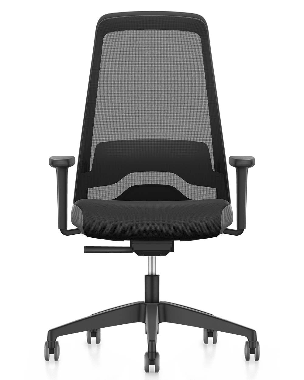 EVERYbody EVERYtime EVERYwhere EVERYis1, der Drehstuhl von Interstuhl mit hohem Netzrücken, der nicht nur im Design sondern auch in der Funktion keine Kompromisse kennt. Ausgestattet mit einer verstellbarer Lordosenstütze, Autolift-Mechanik, die sich mit automatischer Gewichtsregulierung auf die Größe und das Gewicht des Nutzers einstellt, einer Sitztiefenverstellung und breiten- und höhenverstellbaren Armlehnen mit weicher Auflage ist er ein hoch qualitativer Allrounder, der in nur wenigen Tagen lieferbar ist. Der Klassiker erleichtert den Arbeitsalltag und fördert erfolreiches Arbeiten. Vor allem bei langen Sitzphasen unterstützt sein hoher Rücken den Besitzer und bietet beste Voraussetzungen für gesundes Sitzen. Gepolstert ist das schnell lieferbare Multitalent in der Designfarbe graphitschwarz.