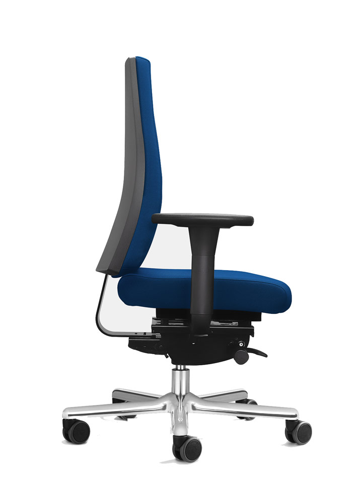 Der FIGO 19 aus dem Hause Löffler ist von seinen ergonomischen Funktionen kaum zu übertreffen. Es handelt sich um einen Design-Drehstuhl, der serienmäßig mit einer modernen Synchronmechanik inklusive Sitztiefenverstellung sowie der patentierten ERGO TOP-Technologier ausgestattet ist. Die rundum bewegliche Sitzfläche fördert bewegtes Sitzen wie auf einem stabil positionierten Gymnastikball und sorgt für einen aufrechten Sitz. Individueller Sitzkomfort wird durch variable Verstellmöglichkeiten wie die Höhe der Rückenlehne (in 8 Positionen einstellbar), der Sitzöffnungswinkel der Rückenlehne (in 5 Positionen arretierbar) und der Anlehnendruck der Rückenlehne (45-120 kg.) ermöglicht. Der FIGO 19 mit seiner außergewöhnlich breiten Material- und Farbauswahl lässt keine Wünsche offen.