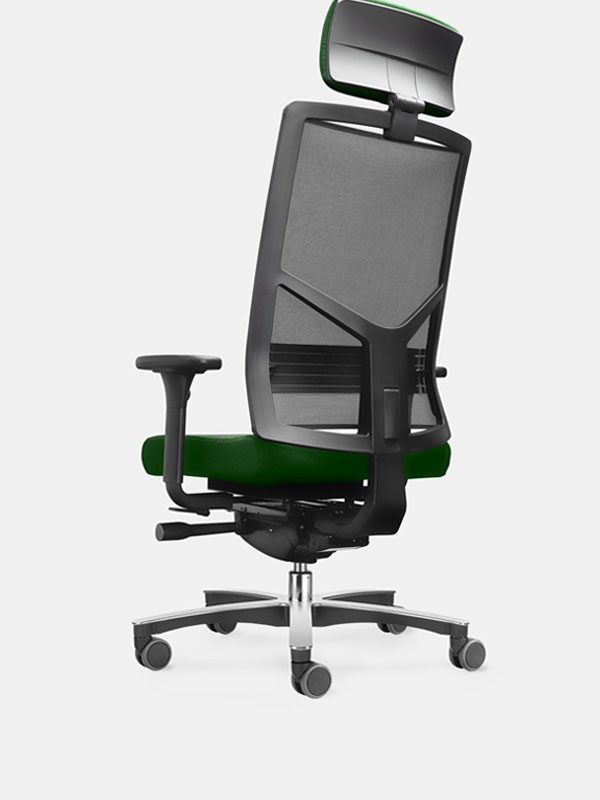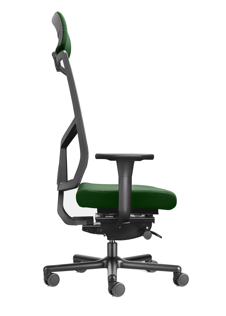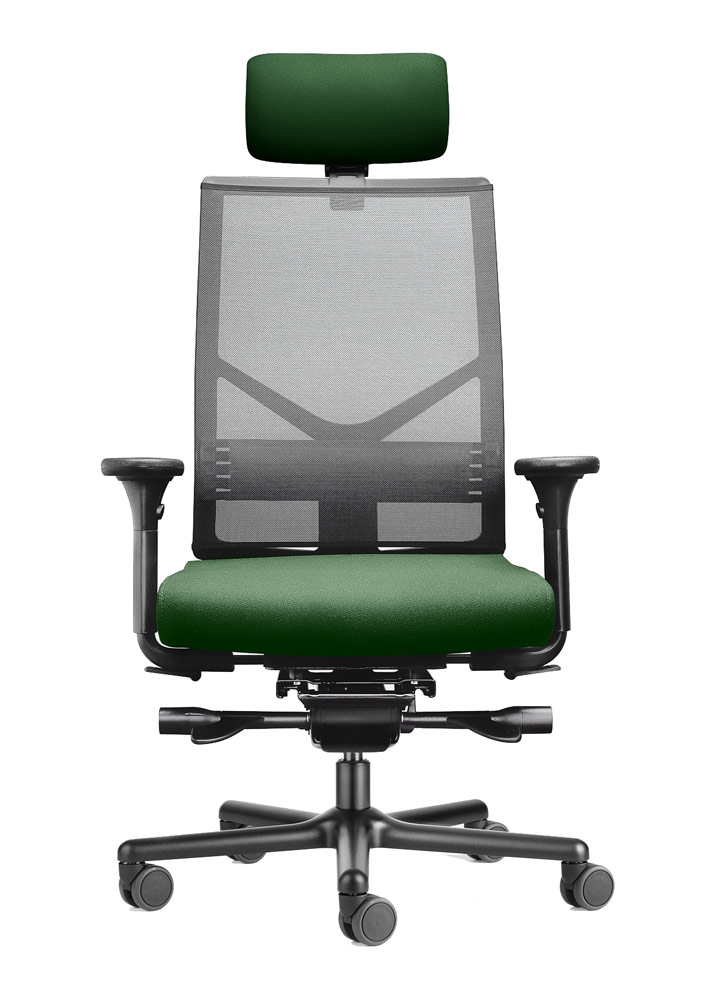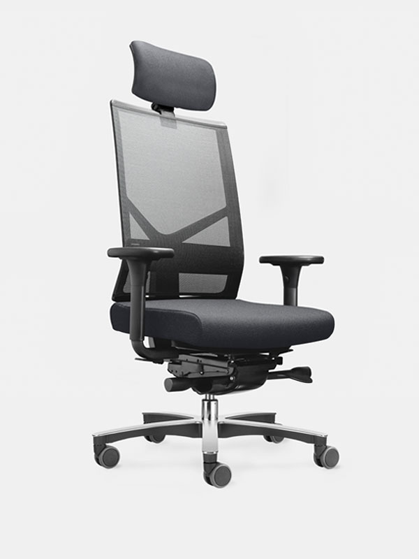 Der FIGO AIR KN aus dem Hause Löffler ist von seinen ergonomischen Funktionen kaum zu übertreffen. Es handelt sich um einen Design-Drehstuhl, der serienmäßig mit einer Kopfstütze, der patentierten ERGO TOP-Technologie, einer modernen Synchronmechanik inklusive Sitztiefenverstellung sowie einer um 12 cm. in der Höhe verstellbaren Lordosenstütze ausgestattet ist. Die rundum bewegliche Sitzfläche fördert bewegtes Sitzen, die verstellbare Lumbalstütze sorgt für einen aufrechten Sitz und die atmungsaktive Netz-Rückenlehne reguliert eine optimierte Luftzirkulation. Individueller Sitzkomfort wird durch variable Verstellmöglichkeiten wie die Höhe der Rückenlehne, der Sitzöffnungswinkel der Rückenlehne (in 5 Positionen arretierbar) und der Anlehnendruck der Rückenlehne (45-120 kg.) ermöglicht. Der FIGO AIR KN mit einer außergewöhnlich breiten Material- und Farbauswahl lässt keine Wünsche offen.