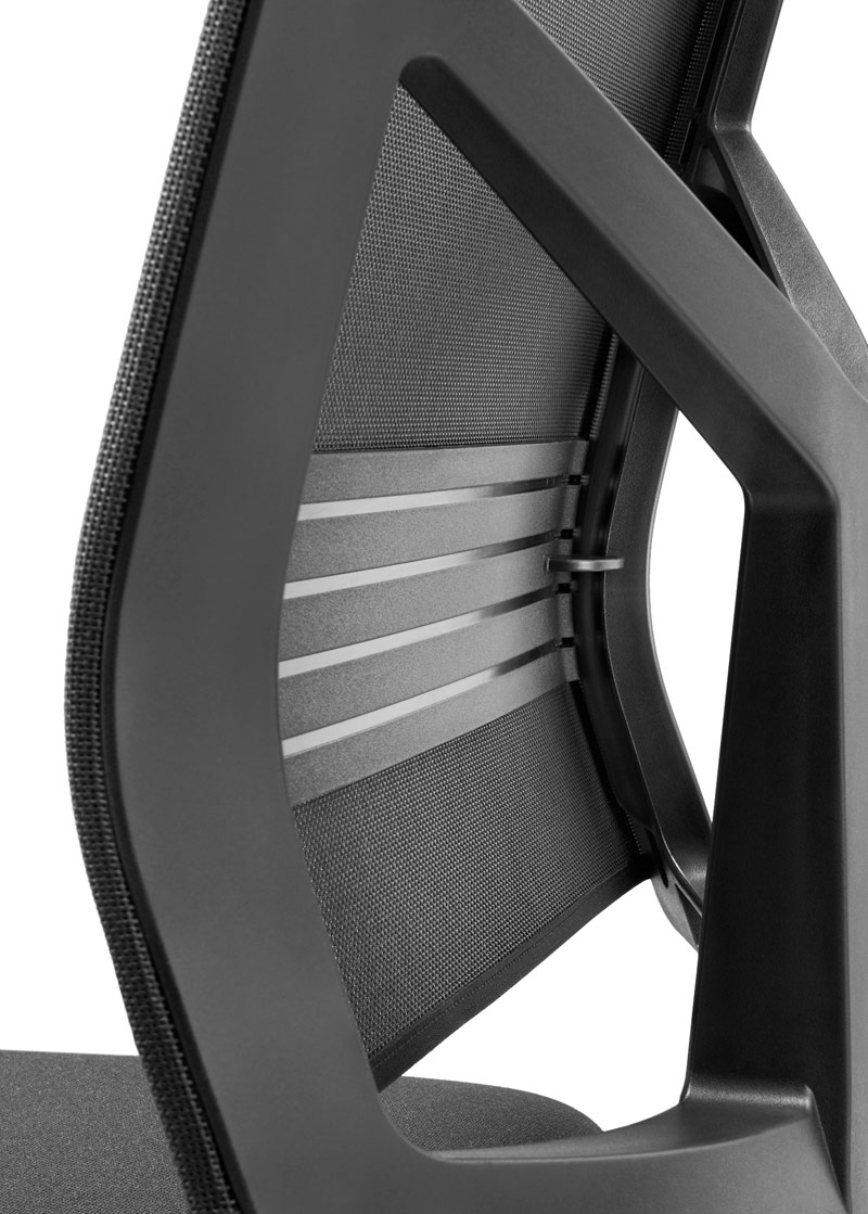 Moderner, sehr bequemer Sessel der höheren Klasse mit atmungsaktiver, höhenverstellbarer Rückenlehne und flexibler Lordosenstütze. Die Rückenlehne ist mit einem schwarzen, atmungsaktiven Netz bespannt und mit einer verstellbaren 3D-Kopfstütze ausgestattet. Der Sitz ist in dieser Variante aus einem schwarzen, atmungsaktiven, selbsttragenden Netz gefertigt. - Synchro P-Mechanik mit Sitztiefeneinstellung - Sitz und Rückenlehne mit atmungsaktiver Netzbespannung - 4D PU-Armlehnen - 3D verstellbare Kopfstütze - Höhenverstellbare Rückenlehne - 3D Lordosenstütze - Aluminium-Fußkreuz - Universalrollen ø 60 mm - Belastbarkeit 130 kg - Garantie 5 Jahre