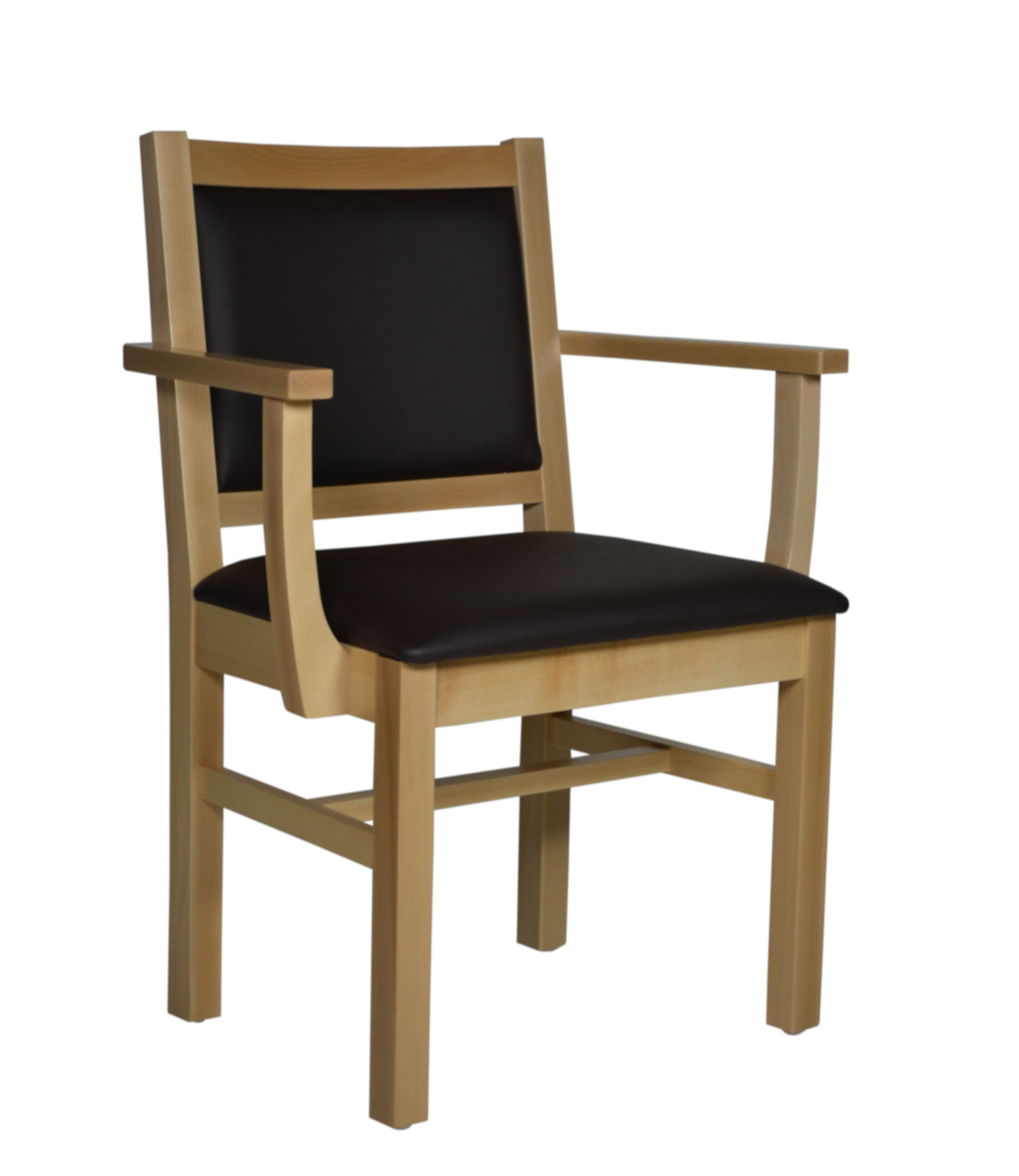 XXL–Holzstuhl / Seniorenstuhl für Schwergewichtige und Adipositas-Patienten mit extra stabilen Armlehnen und bis 250 kg geeignet. Die extra stabilen Armlehnen verfügen über extra einen Armlehnknauf, der weit nach vorne reicht und somit das Aufstehen erleichtert.