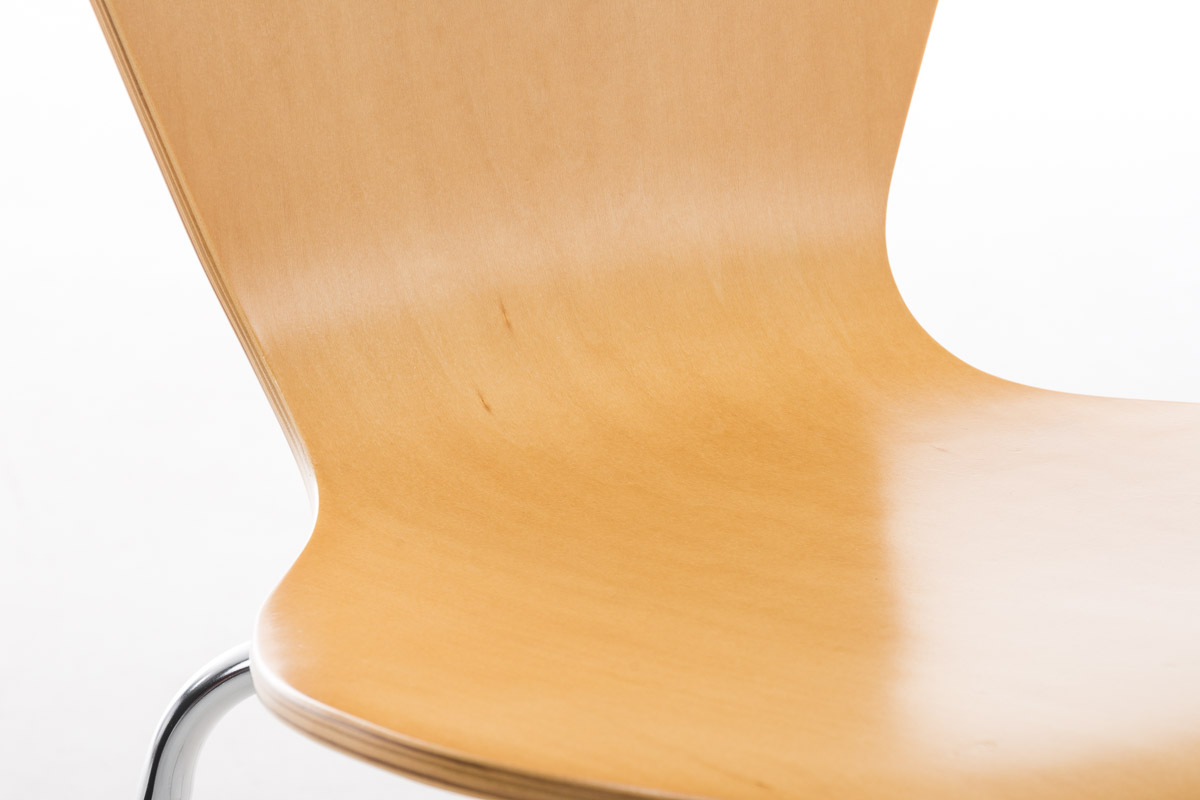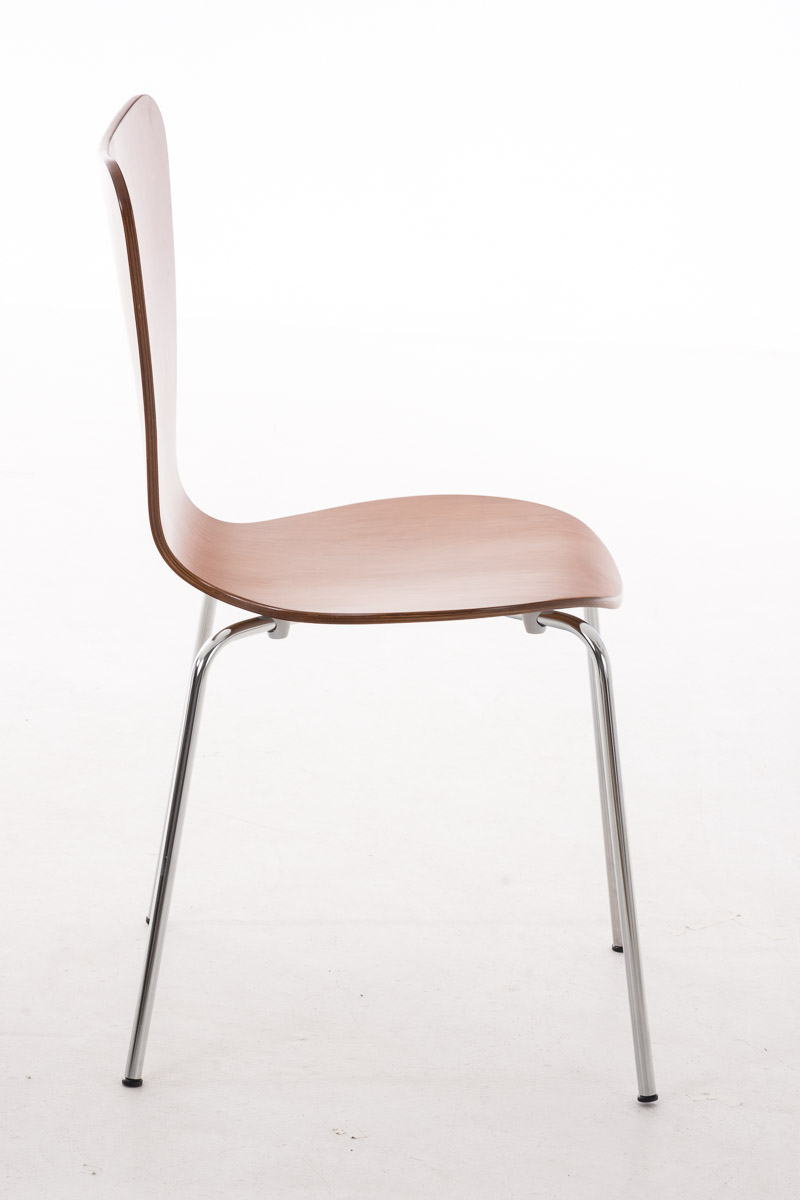 Dieser 4fach stapelbare Besucherstuhl ist ideal für Wartezimmer, Messen und sonstige Veranstaltungen geeignet. Neben schlichter Optik mit zeitlosem Design zeichnet sich dieser Stapelstuhl besonders durch seine ergonomisch geformte Sitzfläche aus, die auch längere Sitzphasen nicht anstrengend werden lässt. Der Sitz besteht aus lackiertem Holz (die Farben "Eiche" und "Walnuss" sind aus Echtholzfurnier). Das Metallgestell in Chromoptik sorgt für einen stabilen und sicheren Stand.