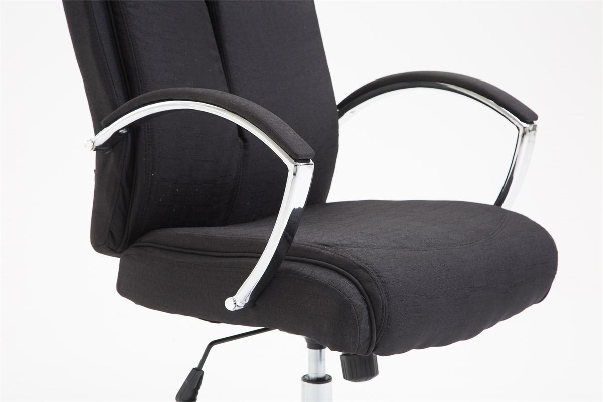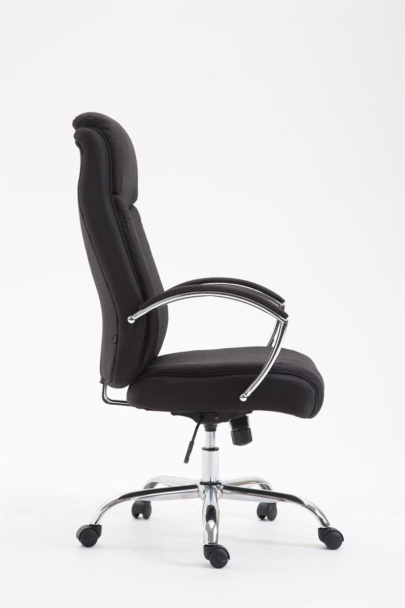 Bürostuhl Valais – bis 136 kg. belastbar! Der Bürostuhl Valais ist ideal für große und schwere Personen geeignet, da die Gasdruckfeder auf einen dauerhaften Gebrauch bis zu 136 kg ausgerichtet ist. Es handelt es sich um einen Bürostuhl mit hochwertiger Polsterung und Kunstleder- oder strapazierfähigem Stoffbezug. Die Sitzhöhe ist mit dem Hebel unter dem Sitz stufenlos verstellbar, dadurch ist ergonomisches Sitzen garantiert. Der eingebaute Wippmechanismus sorgt zudem für mehr Bewegungsfreiheit. Das Gestell des Bürostuhls besteht aus Metall in Chromoptik. Standsicher steht er auf fünf robusten Kunststofflaufrollen. Egal ob Hart- oder Teppichböden - Sie werden immer leicht und locker über den Boden rollen können.Materialzusammensetzung Sitzbezug: Kunstleder (100% Polyurethan) oder Stoff (100% Polyester)Sitz:Bezug: feinstes Kunstleder oder strapazierfähiger StoffSitz, Arm- und Rückenlehne bequem gepolstertHohe Rücklehne für besseren SitzkomfortGestell:Material: Metall in ChromoptikInklusive 5 LeichtlaufrollenHöhenverstellbar durch GasdruckfederBesonderheiten:Ideal für große und schwere Personen geeignetWippfunktion für mehr BewegungsfreiheitKomfortables Sitzen auch nach mehreren StundenPflegehinweise:Zur Reinigung empfehlen wir ein mit lauwarmem Wasser angefeuchtetes BaumwolltuchOberflächen nur mit geeignetem Aufsatz absaugenKeine Haushaltsreiniger verwenden