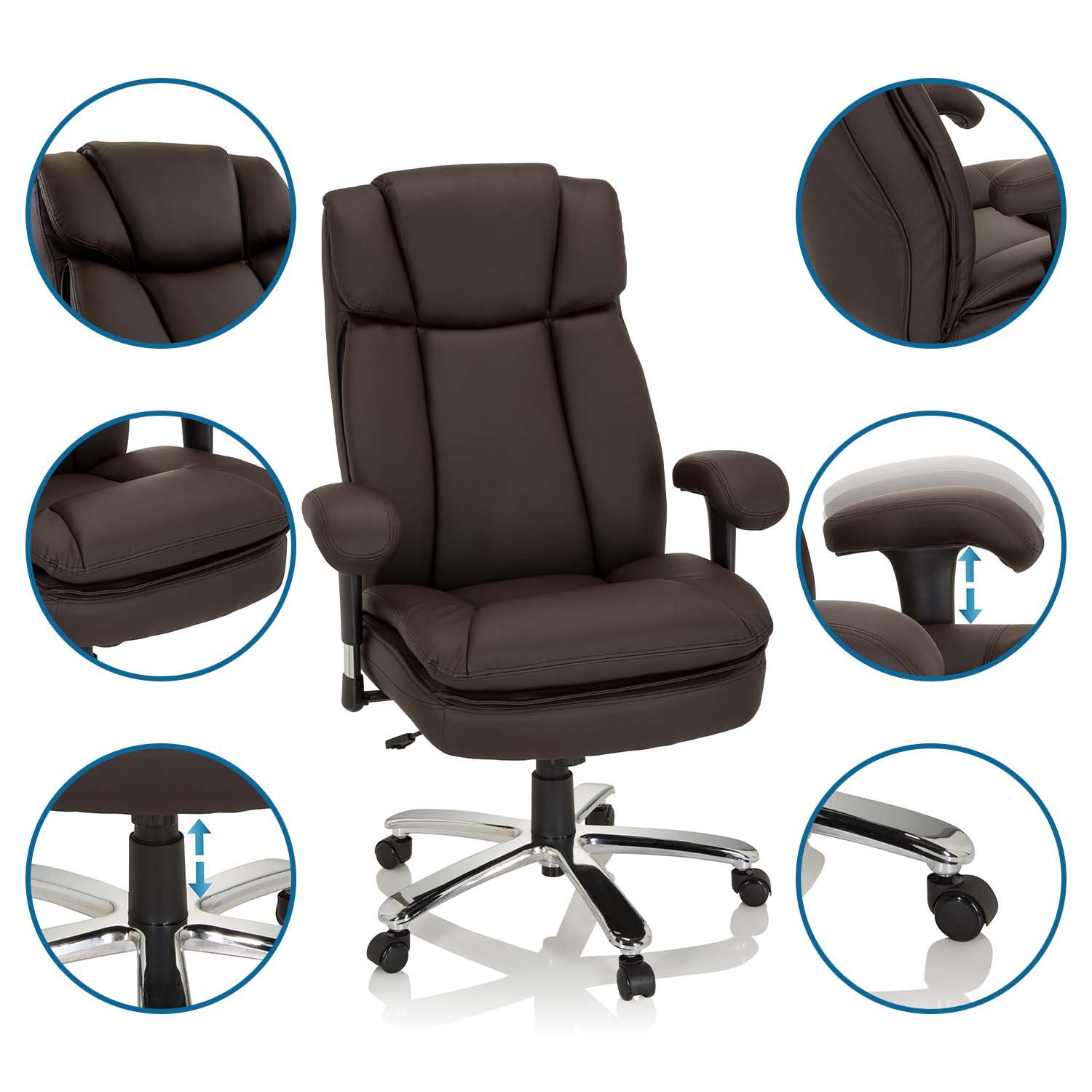 Der Chefsessel BUILDER XXL macht durch Design, Belastbarkeit und seinen außergewöhnlichen Komfort das Sitzen zu einem echten Vergnügen. Die hochwertige Polsterung mit mehrschichtigem Aufbau unterstützt den Rücken an den richtigen Stellen und sorgt so dafür, dass Sie jederzeit konzentriert und entspannt bleiben. Die integrierte Kopfstütze unterstreicht den Sitzkomfort, was den Builder bis zu einer Körpergröße von 210cm bequem verwendbar macht.