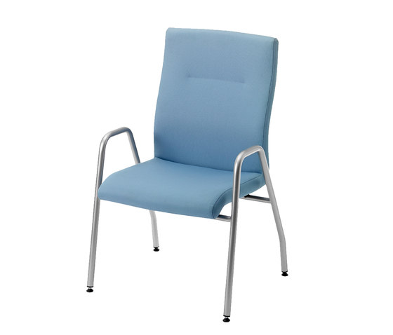Der vierbeinige Besucherstuhl PANAMERO (erhältlich mit und ohne Armlehnen) von LÖFFLER macht Eindruck im Empfangsbereich. Als Schwerlaststuhl ist er auf bis zu 180 kg Gewicht ausgelegt und vermittelt mit seinem breiten Rücken ein angenehmes Sitzgefühl. Die Rückenlehne ist zur besseren Ergonomie leicht nach hinten geneigt der Stuhl ist deshalb auch als Konferenzstuhl in langandauernden Sitzungen hervorragend geeignet. Zusätzliche Flexibilität ist durch seine Stapelbarkeit gewährleistet. konsequentes, stilvolles Design bis 180 kg belastbar Gestell 4 Beiner Schwarz oder Chrom Ø 25 mm Rundrohr, Wandstärke 2,5 mm ergonomische Formholz-Sitzschale (30 mm gepolstert) 3-fach stapelbar Bezugsstoffe nicht verklebt Die ERGO TOP®-Technologie von LÖFFLER bildet die technische Voraussetzung für unser Ergonomiekonzept „Bewegtes Sitzen“, bei dem verschiedene ergonomische Denkrichtungen ideal miteinander verbunden werden. Es handelt sich hierbei um eine bewegliche Sitzfläche, die das aktive Sitzen unterstützt. ERGO TOP® ermöglicht und fördert einen maximal großen Bewegungsspielraum, ähnlich dem Sitzen auf einem Gymnastikball, mit biomechanisch optimierten Bewegungsabläufen. So unterstützt ERGO TOP® unser Ziel, dass sich immer mehr Menschen von ihrem starren Sitzen verabschieden - ihrer Gesundheit zuliebe. Die Entwicklung von ERGO TOP® erfolgte in enger Zusammenarbeit mit dem Lehrstuhl für Ergonomie der Technischen Universität München und kommt heute in allen LÖFFLER Drehstühlen zum Einsatz. Auch die Interessengemeinschaft der Rückenschullehrer/innen e. V. (IGR) empfiehlt unsere Drehstühle mit ERGO TOP®-Technologie uneingeschränkt.