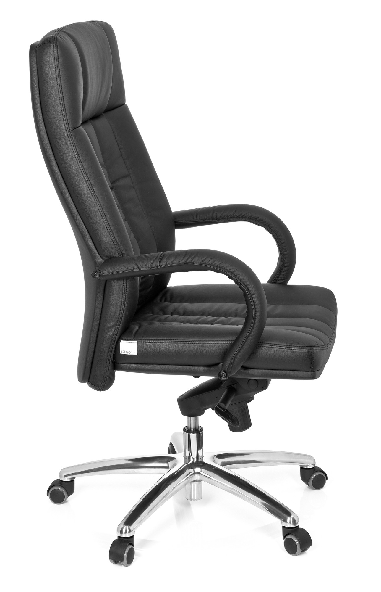 Der G 300 ist ein XXL Chefsessel bis 150kg Körpergewicht und bietet ausreichend Platz, ohne dass dabei auf Komfort oder wertige Materialien verzichtet werden muss. Dank der angenehmen Polsterung kann man über viele Stunden hinweg bequem sitzen. Die ergonomisch geformte Rückenlehne unterstützt die richtige Sitzhaltung und so ist man auch nach einem langen Arbeitstag am Schreibtisch noch fit und ausgeruht.