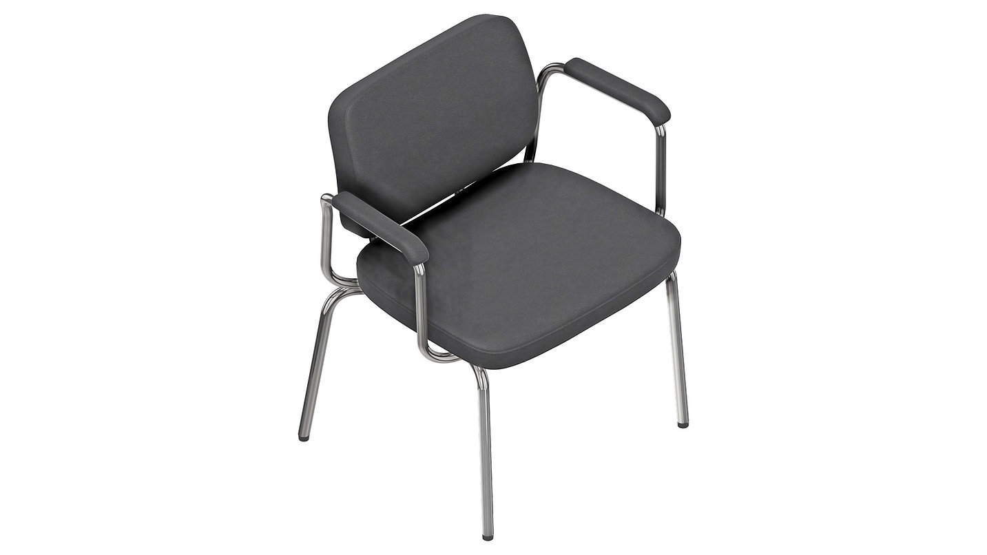 Vollpolstersessel mit halbhoher Lehne 4 Fußgestell verchromt Ø 25x2 mm Bezug standardmäßig Xtreme FR (100.000 Scheuertouren, schwer entflammbar) oder Kunstleder Palena (schwer entflammbar, desinfektionsmittelbeständig) Armlehne mit weicher Polsterauflage Gesamthöhe: 950 mm, Sitzhöhe: 490 mm Sitzbreite/Sitztiefe: 560 x 480 mm Belastbarkeit: 400 kg