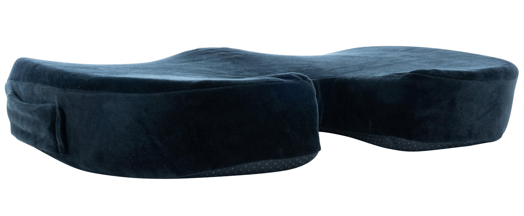 Dieses orthopädische Sitzkissen wurde speziell zur Linderung der typischen Symptome entwickelt, die durch häufiges Sitzen, Steißbeinverletzungen, Ischias, oder Dekubitus verursacht werden. Es hilft darüber hinaus auch dabei, die Haltung und die Durchblutung zu verbessern. Das Kissen lässt Platz für das Steißbein im Sitzen und fördert eine gesunde Haltung, indem es die Wirbelsäule auf natürliche Weise ausrichtet und den Druck auf den unteren Rücken verringert. Der verringerte Druck auf die Oberschenkel-Unterseite (z. B. durch die Stuhlkante) verbessert die Durchblutung. Die allgemeine Druckentlastung in Kombination mit der kühlenden Gelschicht im Inneren eignet sich besonders zur Schmerzlinderung.