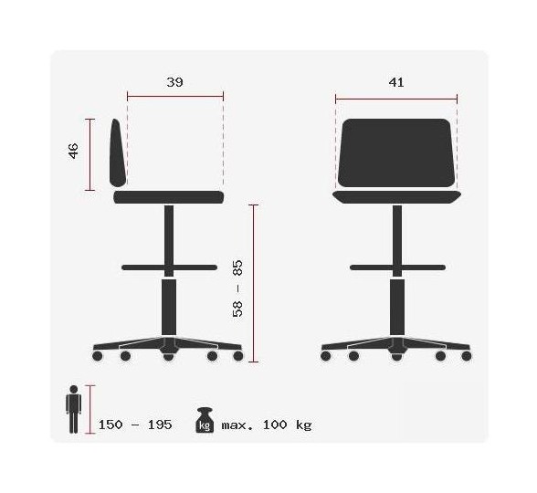 Gesundes und motiviertes Arbeiten! Der Arbeitsstuhl TOP WORK 03 unterstützt Sie bei der täglichen Arbeit. Der Sitz aus Hartschaum bietet mit rutschhemmenden Querrillen hohe Sicherheit. Unterstützt wird dies durch das breite Fußkreuz welches einen sicheren Stand garantiert. Die ebenso wie das Fußkreuz verchromte umlaufende Fußstütze fördert das ermüdungsfreie Sitzen am Arbeitsplatz. Dabei ist der Arbeitsstuhl auch für große Menschen bzw. hohe Arbeitsflächen geeignet und lässt sich bis auf 87 cm Sitzhöhe ausfahren. Der Stuhl kann wahlweise mit Stuhlrollen oder mit Standfüßen verwendet werden. Ergonomisch ausgeformte Spezial-Polyurethanpolsterung im Sitz Sitz mit rutschhemmenden Querrillen Komfortabler Fußring, höhenverstellbar Hochwertiges Stahl-Fußkreuz, verchromtes Lastabhängig gebremste Sicherheitslaufrollen und Bodengleiter im Lieferumfang enthalten (wir empfehlen für den prof. Einsatz Gleiter) Dieser Arbeitsstuhl wird zerlegt geliefert.