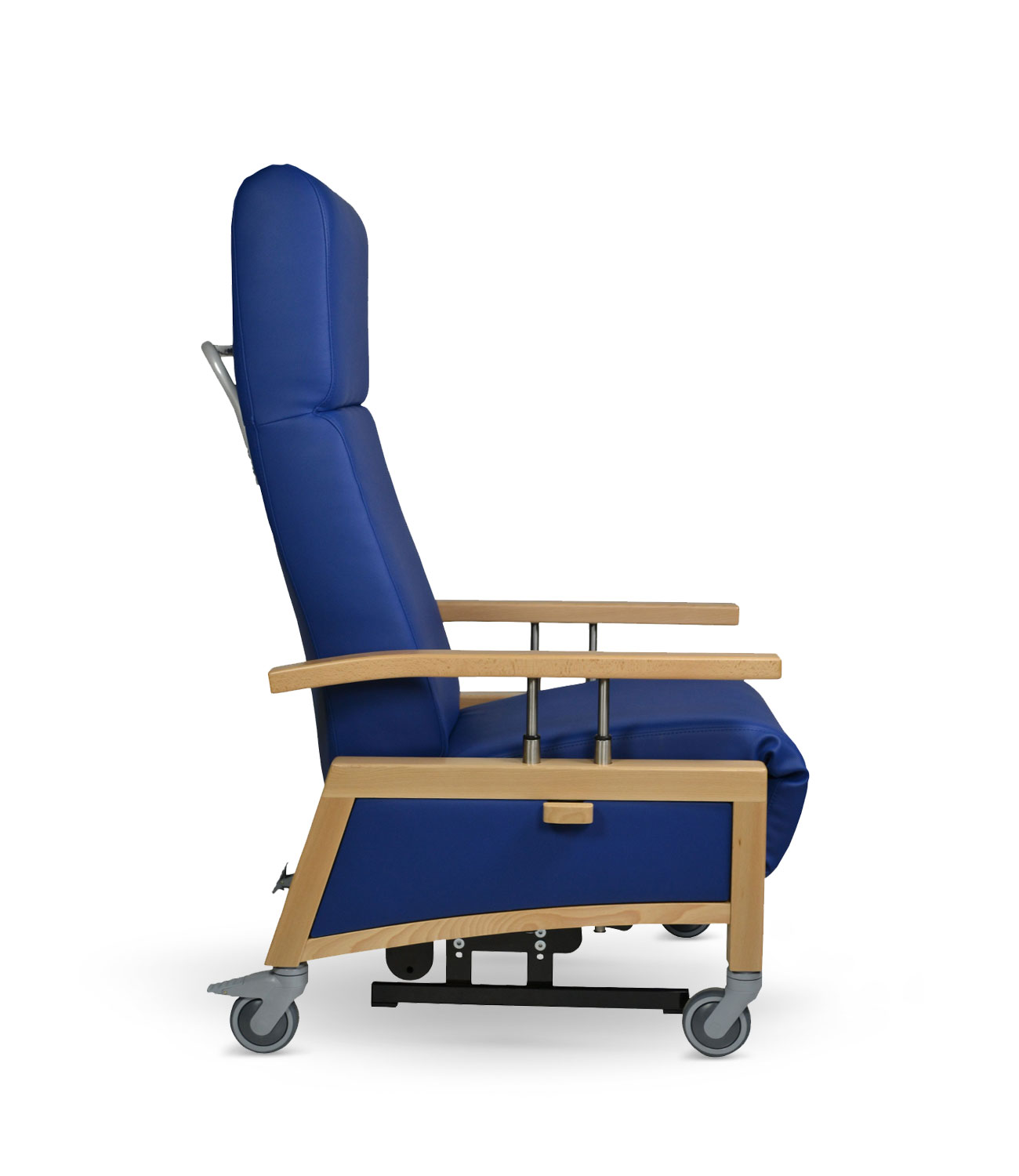 Der Pflegesessel Berlin GET UP mobil Plus ist extra für die häusliche sowie für die professionelle Pflege entwickelt. Durch die drei wählbaren Holzfarben und den vielen Arten an Bezugsmaterial und Dekoren in höchster Qualität lässt der Sessel Berlin GET UP mobil Plus keine Wünsche offen und passt sich jedem Wohn- und Heimzimmer an. Durch die in der Höhe leicht verstellbaren Armlehnen, durch die sich ein Umsetzen viel leichter gestaltet, den Schiebegriff an der Rückenlehne und die vier großen Rollen, von denen die beiden hinteren mit einer Feststellbremse versehen sind, machen den Sessel multifunktionell. Höchster Komfort und beste Mobilität wird durch die einfache Verstellung in die Liege- oder Relaxposition ermöglicht. Dabei sind Rückenteil und Beinteil getrennt voneinander verstellbar. So ist bequemes Sitzen oder Liegen über mehrere Stunden hinweg kein Problem. Das Aufstehen danach erfolgt leicht und bequem mit der Liftfunktion des Sessels, die per Knopfdruck zu steuern ist. Die Verstellung erfolgt elektrisch, optional auch mit Akku erhältlich.